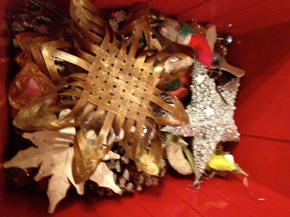 This is a really good time to cull the ornaments you don’t love or use. If it’s sitting in the bottom of your boxes when you take down the tree, there’s a reason. I always have a bag for Goodwill at hand.