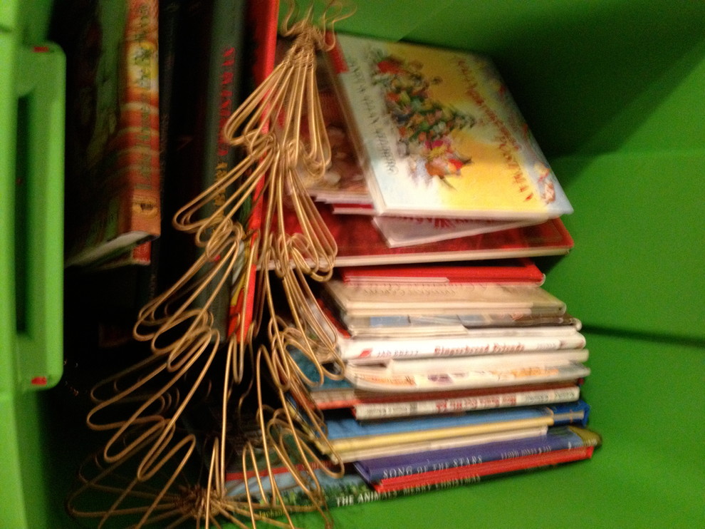 All season long I have a big basket of our Christmas books by the tree. Every night youngest and I read several titles — a favorite tradition. Storing the books is as simple as emptying the basket into their labeled box. A non-breakable tree or two is often stacked on top.