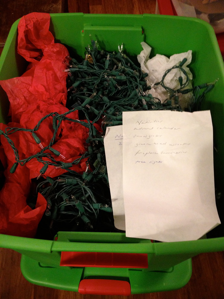 Under that is a second note and a reminder that we needed to buy two more strands of lights. I was glad to have this when we opened the boxes and before I hung the lights on our tree.