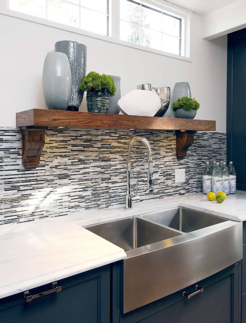 2. Wall-mounted faucets. It is much easier to wipe a counter down with a wall-mounted faucet. To get this piece right, you’ll need to know where the finished wall surface will fall once the backsplash is installed and where the sink will be centered so you have a faucet that comes out above the drain. Before the plumbers start roughing in pipes, every decision needs to be made or you risk ending up with elements that don’t work well together.