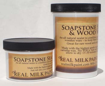 One last tip: If you have recycled paper counters (as in the previous photo), or ones made of soapstone or wood, I recommend Real Milk Paint's Soapstone & Wood Sealer. This finish is made from food-grade walnut oil (meaning it's safe for food to touch the surface without fear of contamination) and T1 carnauba wax flakes. There are no solvents, which means no VOCs (volatile organic compounds) or added fragrances.