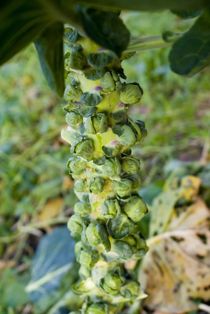 Like other cabbage crops, Brussels sprouts are prone to problems, including aphids, cabage loopers, cabbage root maggots, cabbage worms, flea beetles, harlequin bugs, black rot, clubroot, damping off, downy mildew and fusarium wilt. You probably won’t get all of these, but keep an eye out for problems as the plants grow. Crop rotation and a soil pH of 6.5 or above will help prevent diseases.