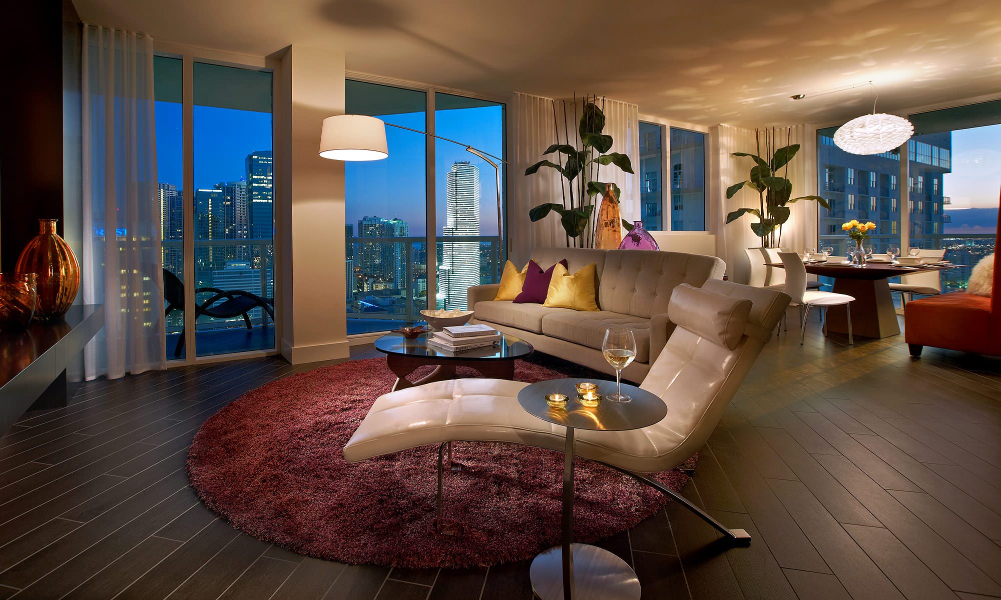 Bird of paradise is a great choice for this contemporary high-rise living space in Miami, because it connects the residents to the tropical surroundings far below and detracts from the sterility of the cityscape. The pair of plants provides grounding symmetry in this open space, as well as adds vertical interest, which is always an important element in any room.