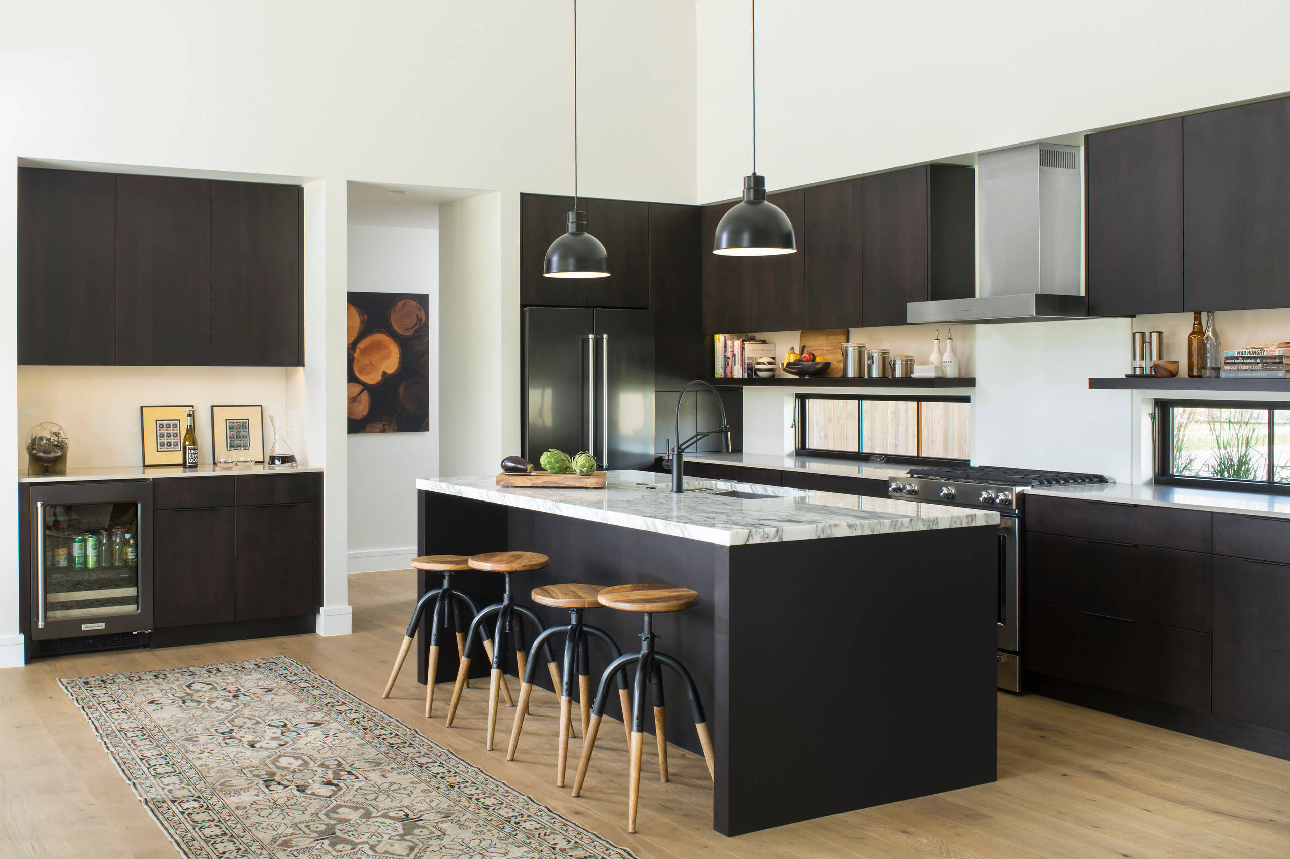 This Colorado kitchen is open to both the dining and living areas, thanks to a wall-free transition.
