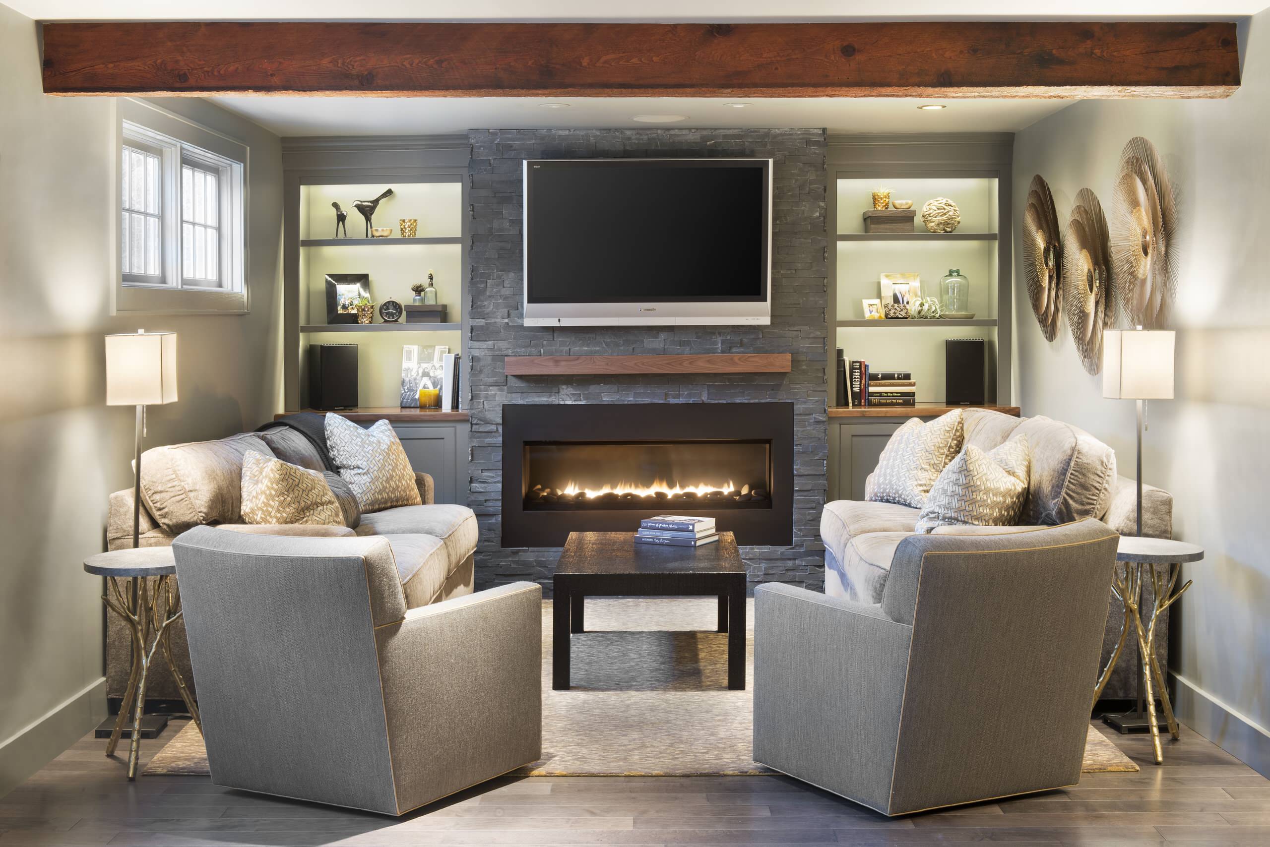 If you plan on using the room for reading, for instance, you’ll want to provide lamps beside each reading spot. If the room is used for TV viewing, you’ll want overall illumination that can be adjusted to different settings, with light sources that won’t reflect on the TV screen.