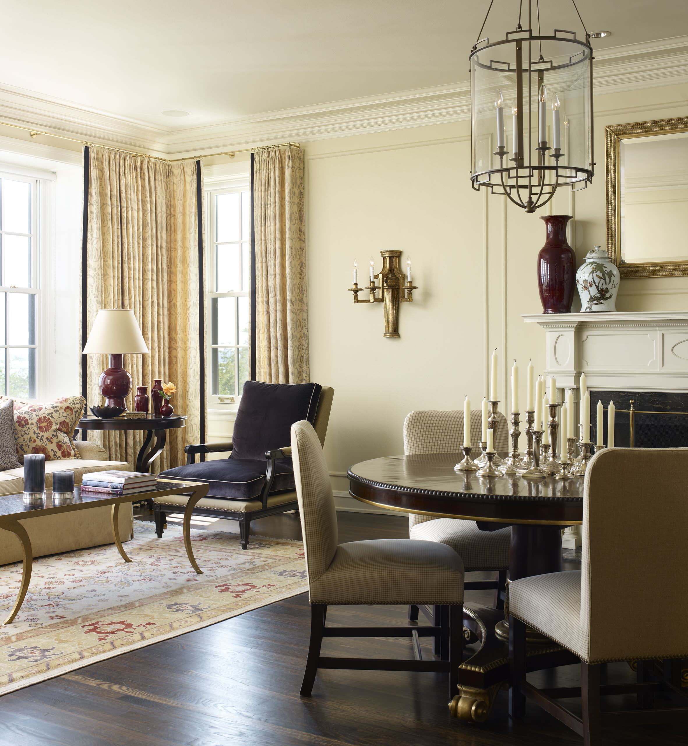 The “public” spaces in your home should have at least two lighting levels: a bright one for tasks or festivities, and a dimmer one for relaxing or more subdued gatherings. You can achieve that variety by varying the lights you turn on, or with dimmers.