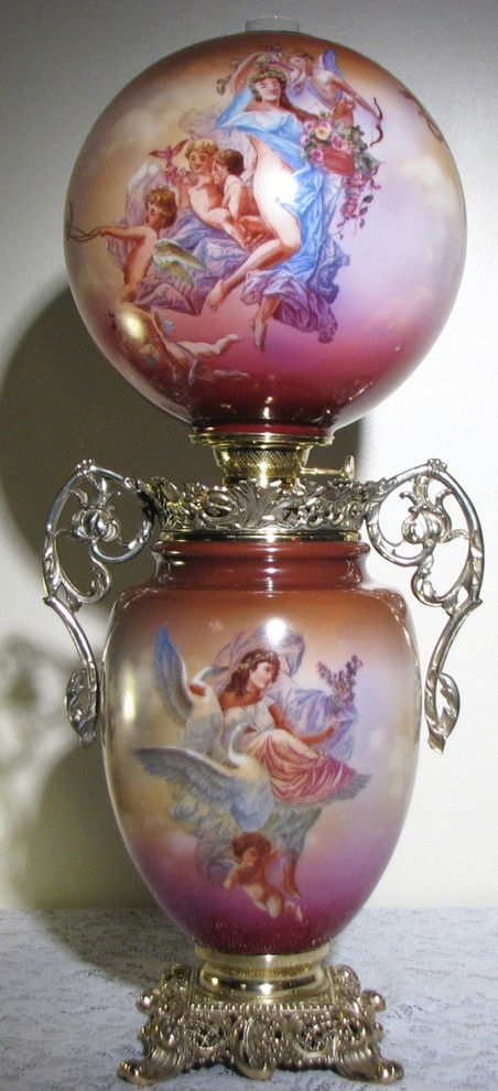 Of course, there is more to antique lighting than just ceiling fixtures and sconces. Oil lamps have been used since biblical times, and there are some really awesome late-Victorian oil lamps that evoke a Gone With the Wind feeling. This beautiful vintage Lady, Cherubs & Swans lamp from 19th Century Lighting is a stylish example. Although made a bit after the Civil War, it still creates that atmosphere and would be gorgeous in many a parlor, den or entry hall.