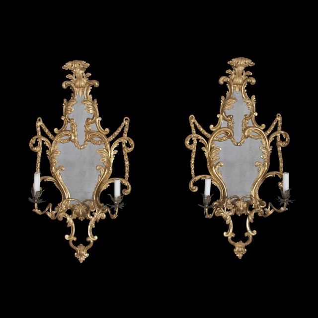 A girandole can also refer to a mirror with candles attached. I really like this pair of girandole sconces. They would look beautiful flanking a picture over a fireplace or in a dining room over a buffet.