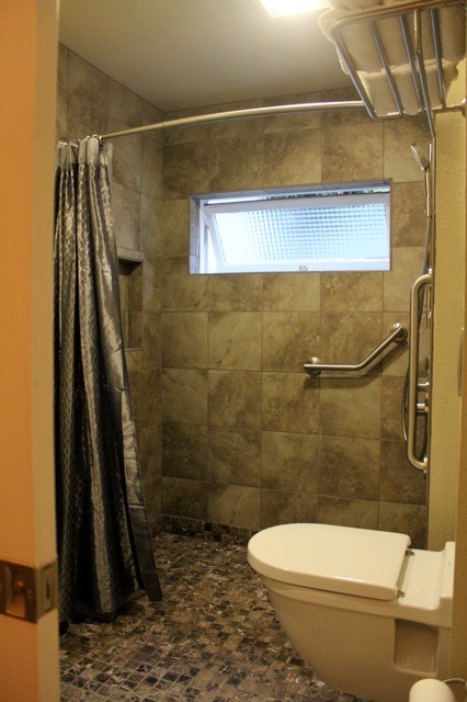 Tip: Buy the best and most quiet fan you can get for your bathroom and put it on a timer. That may not sound like a design strategy for making your bathroom easier to clean, but it is. If you have a fan that sounds like a jet engine, you’re less likely to turn it on and that will lead to an increase in mildew … and that means more cleaning for you. A whisper-silent one is so quiet that you’ll need a timer so you don’t forget to turn it off.