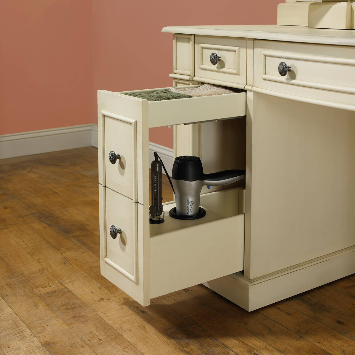 Have a place for everything. One thing that makes it easier to clean a bathroom is to have a spot for what you want to put away. No thinking about where to place it or having to organize a messy drawer to make room.