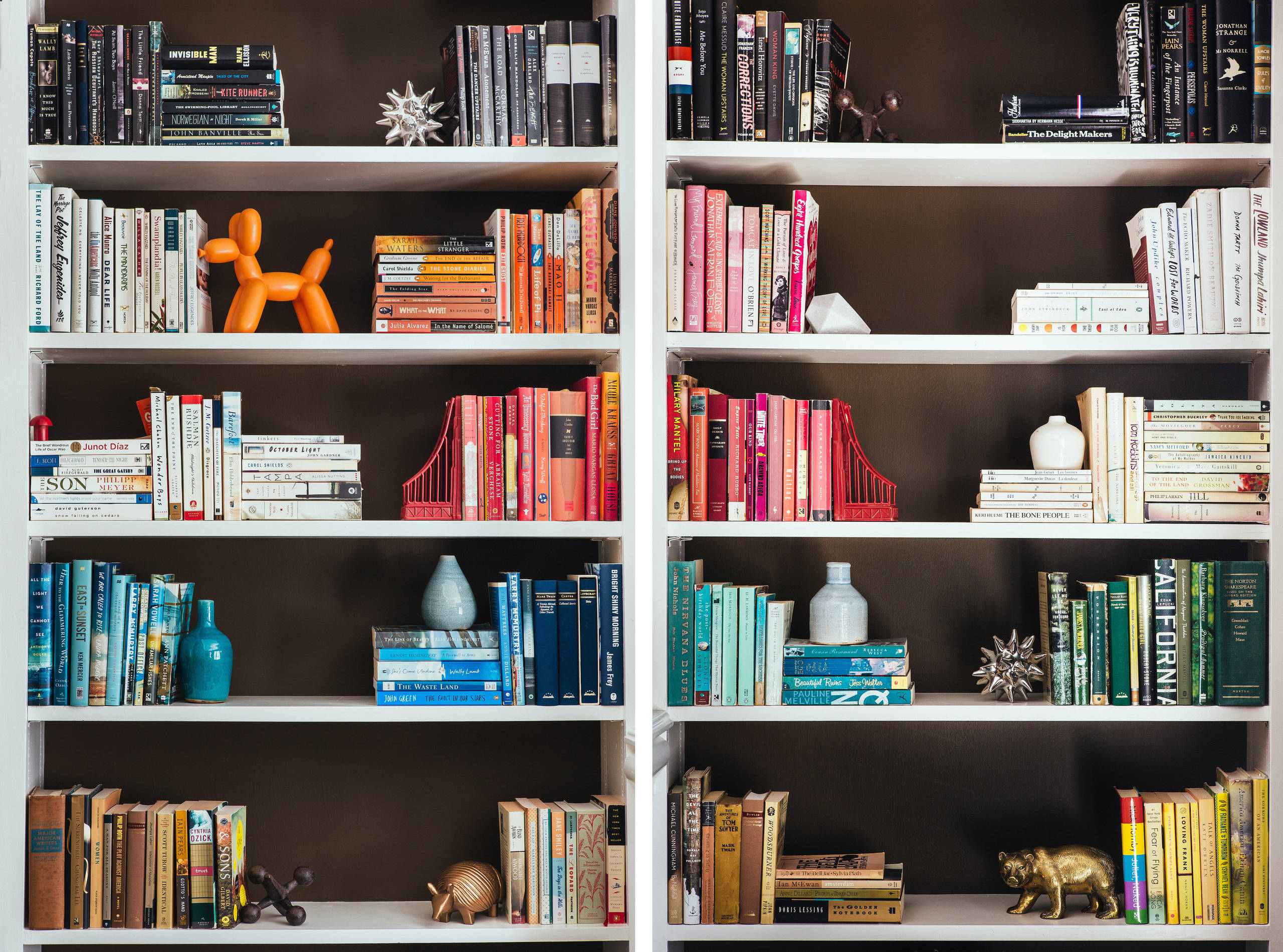 “If the client asked me why, I would tell them there is something frankly fake about books put on a shelf that will never get touched. There is something about books that have been sorted and displayed by color (unless they are a series, like law books or old tomes) that seems pretentious, even superficial. Like telling the world the content of the book is not what’s important; that it’s the exterior shell that is. Doesn’t that seem to go against everything we try to teach our young people about humanity? It’s what’s inside that counts. Looks aren’t important. ‘Don’t judge a book by its cover.’ Remember?