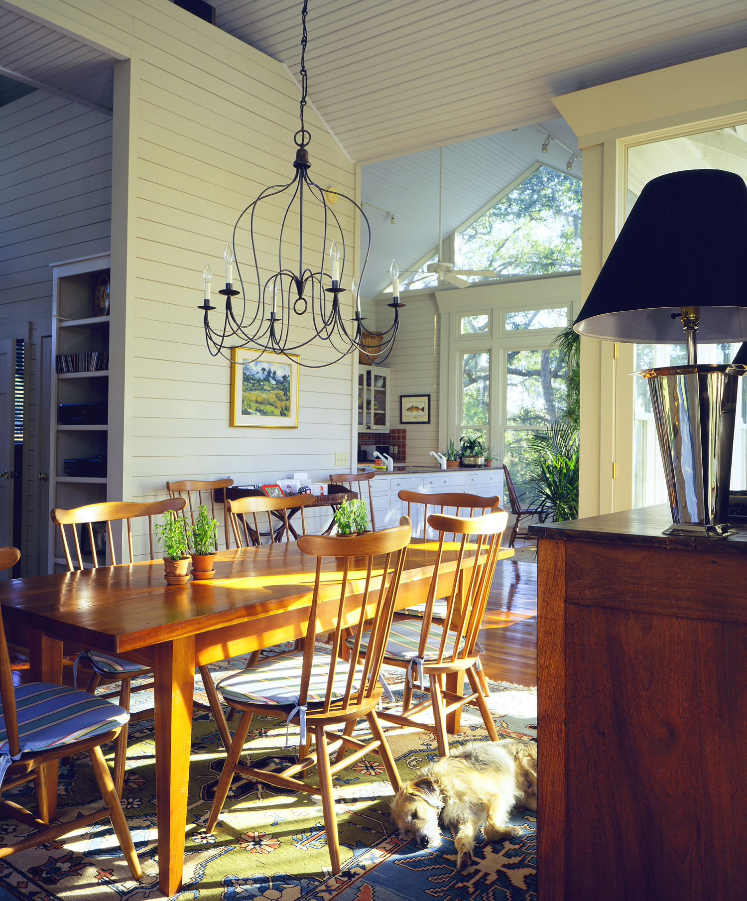 in the kitchen carries on into other rooms. It's a great way to unite different spaces. This strategy could help modryja connect the 1900 section of her lake house with the 70s addition.