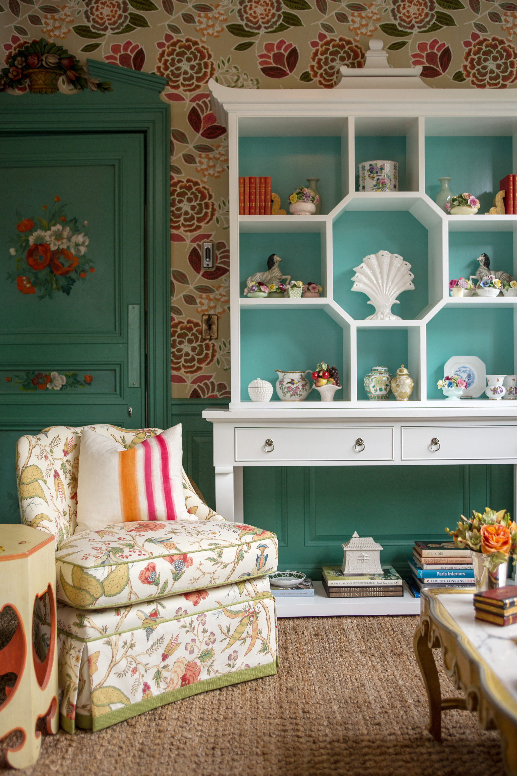 South Carolinians Kirk and Katie Shields decorated their master bedroom with the hand-printed 1941 pattern, which Katie fondly remembered from her grandmother’s home.