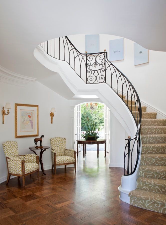 Williams’ sense of elegance and proportion is evident in the entry hall staircase and parquet floor of this Beverly Hills home he designed in the 1940s. Lori Teacher worked on its restoration.