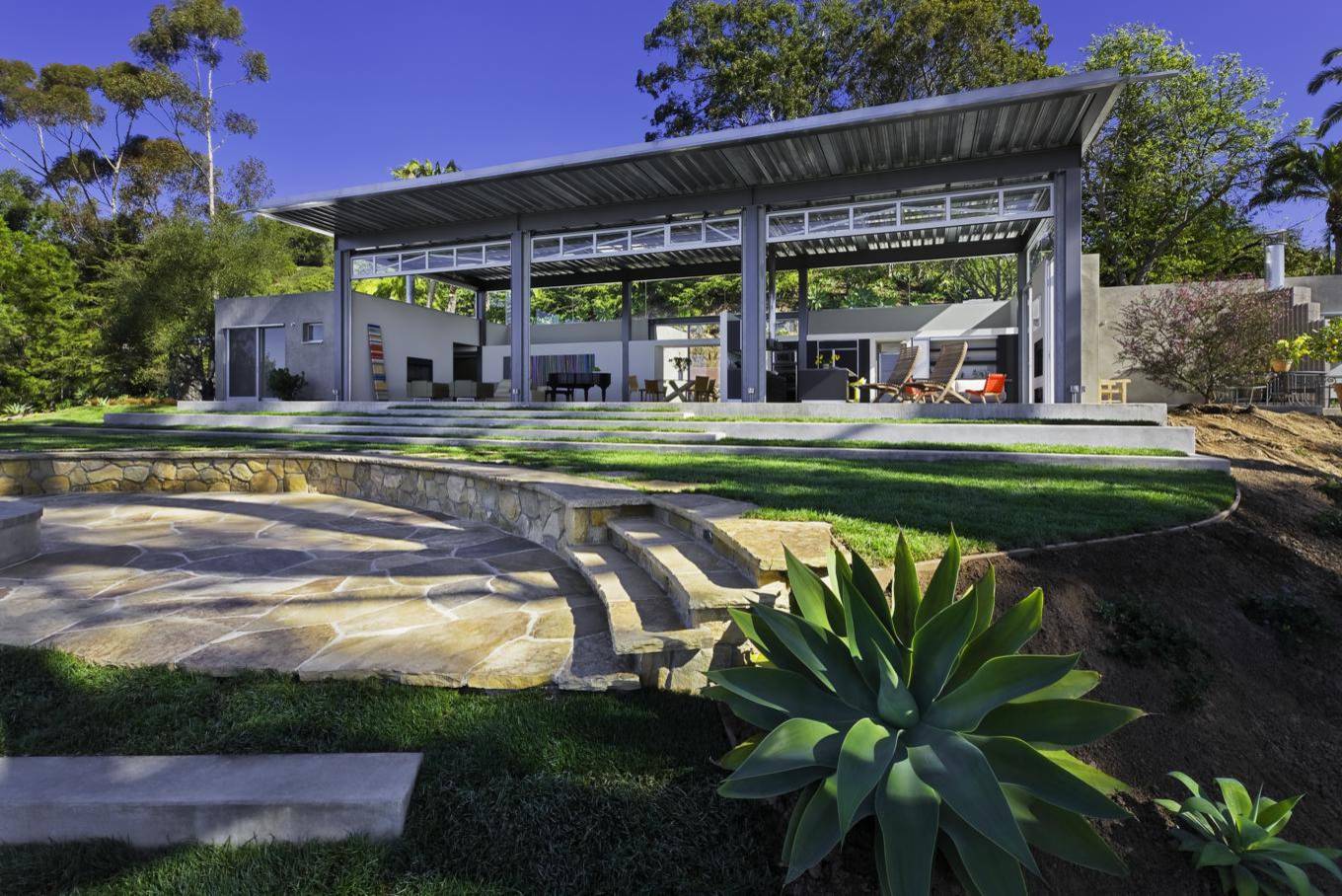 This is another home that takes full advantage of a completely open wall (again on both sides) to focus views to the outdoors. The limited ceiling height reinforces the effect.