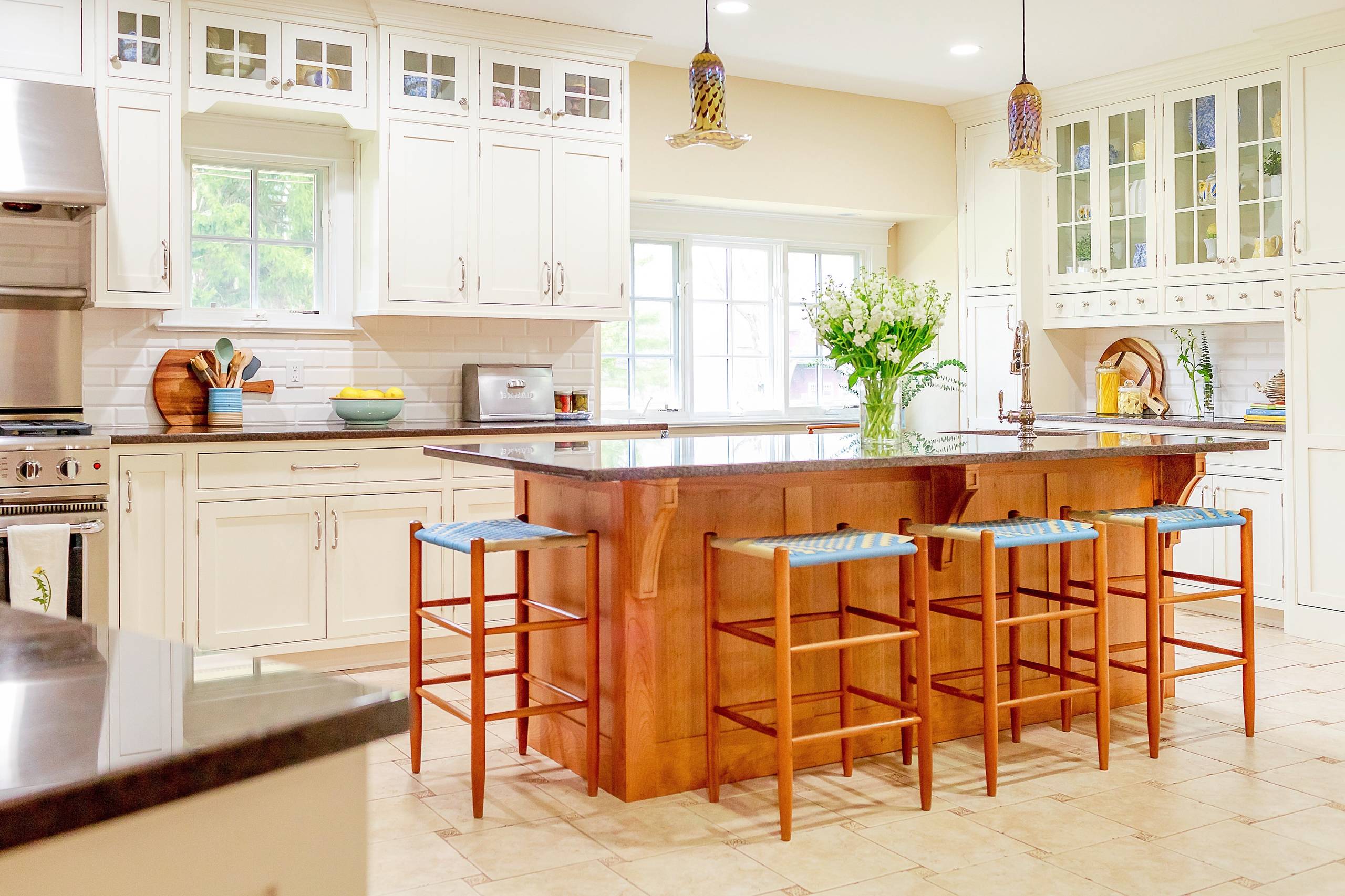 Bula added Shaker-style cabinets to this farmhouse kitchen in New York. “Shaker-style cabinets have been around forever, and due to their timeless nature, I believe they will be popular for a long time to come.”