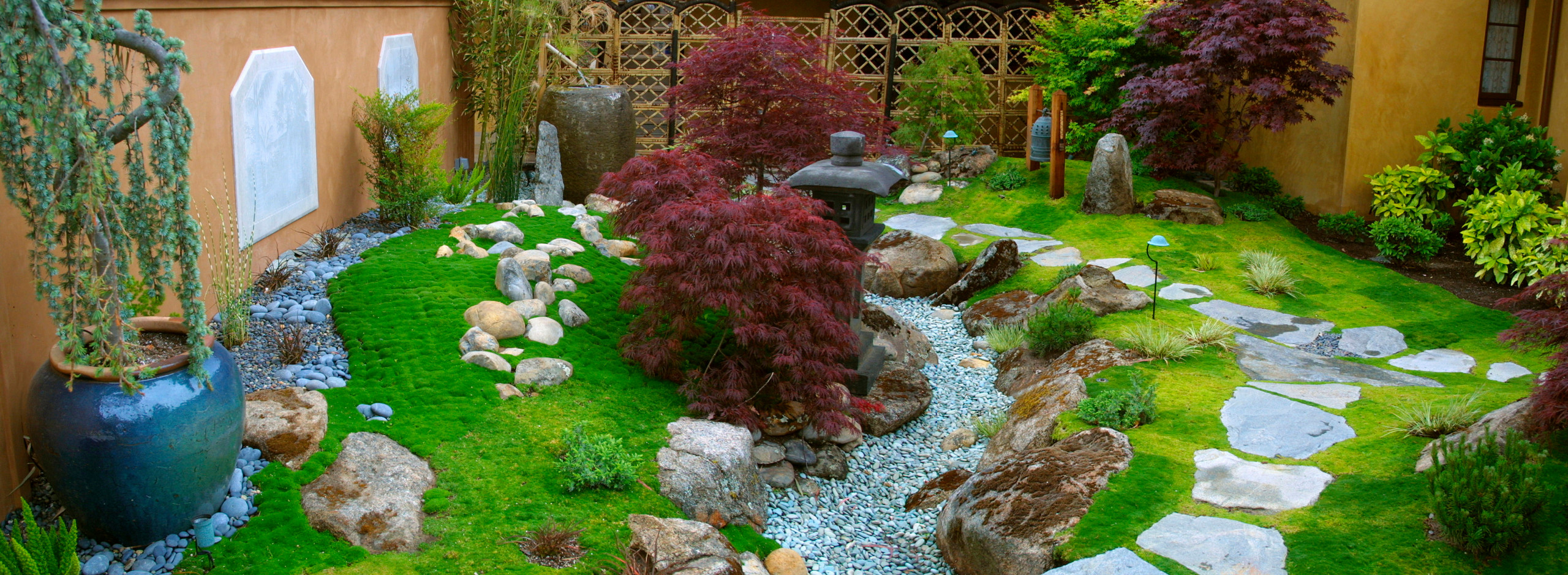 Consider Japanese maples (Acer palmatum cvs, zones 5 to 8) or weeping and contorted trees to add that final layer of interest to your dry creek bed.