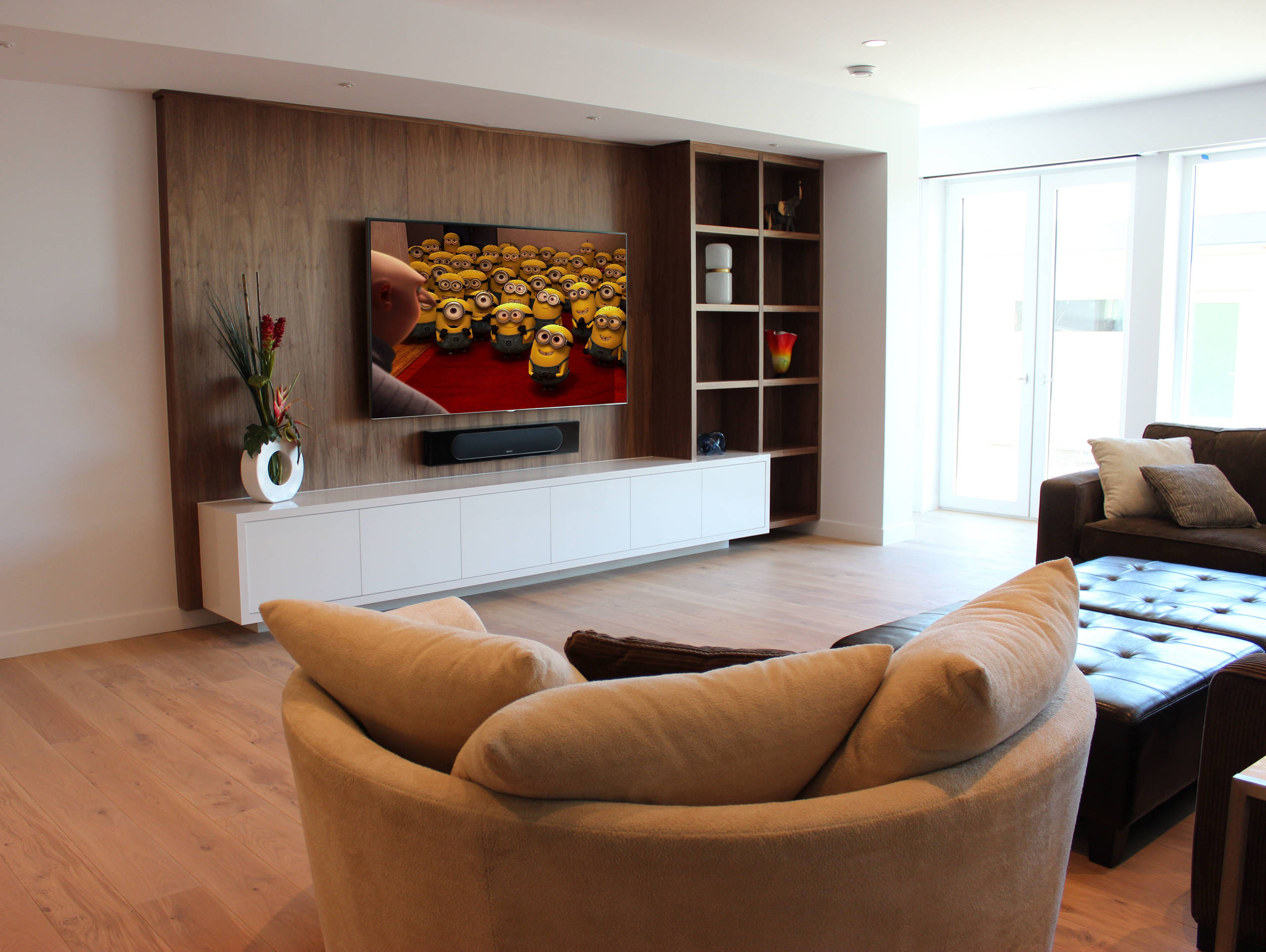 Top off the seating area with a retro popcorn cart, and you’re ready to bite right into Shark Week or other mind-blowing footage you want to experience.