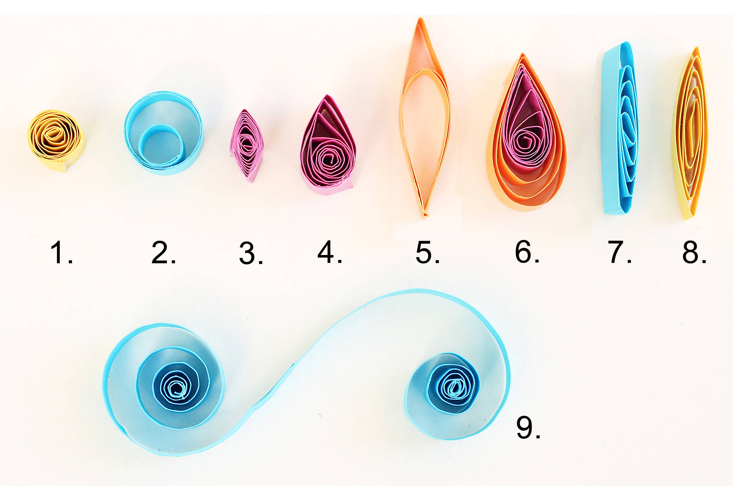 1. Loose coil. The loose coil is the basic shape from which many other shapes are made. After coiling a tight circle, release the end, slightly allowing the circle to expand to the desired size. Apply glue to the tail and hold.