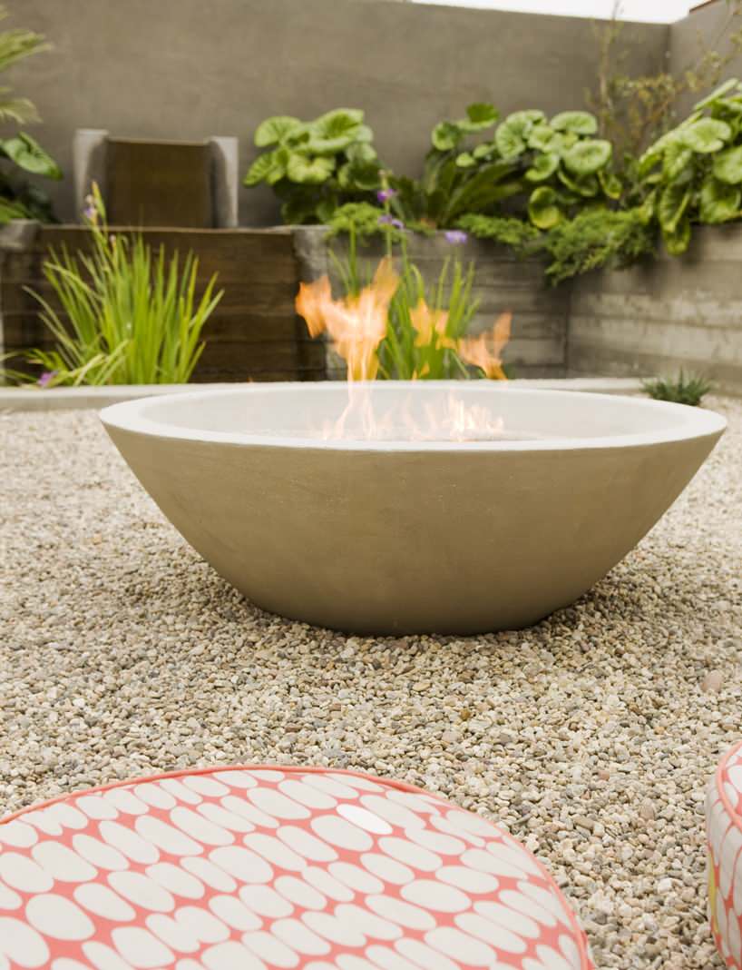 Likewise, this mix of concrete and gravel is a safe platform for flame. Can you just hear the fantastic crunch of gravel underfoot as we approach this fire?