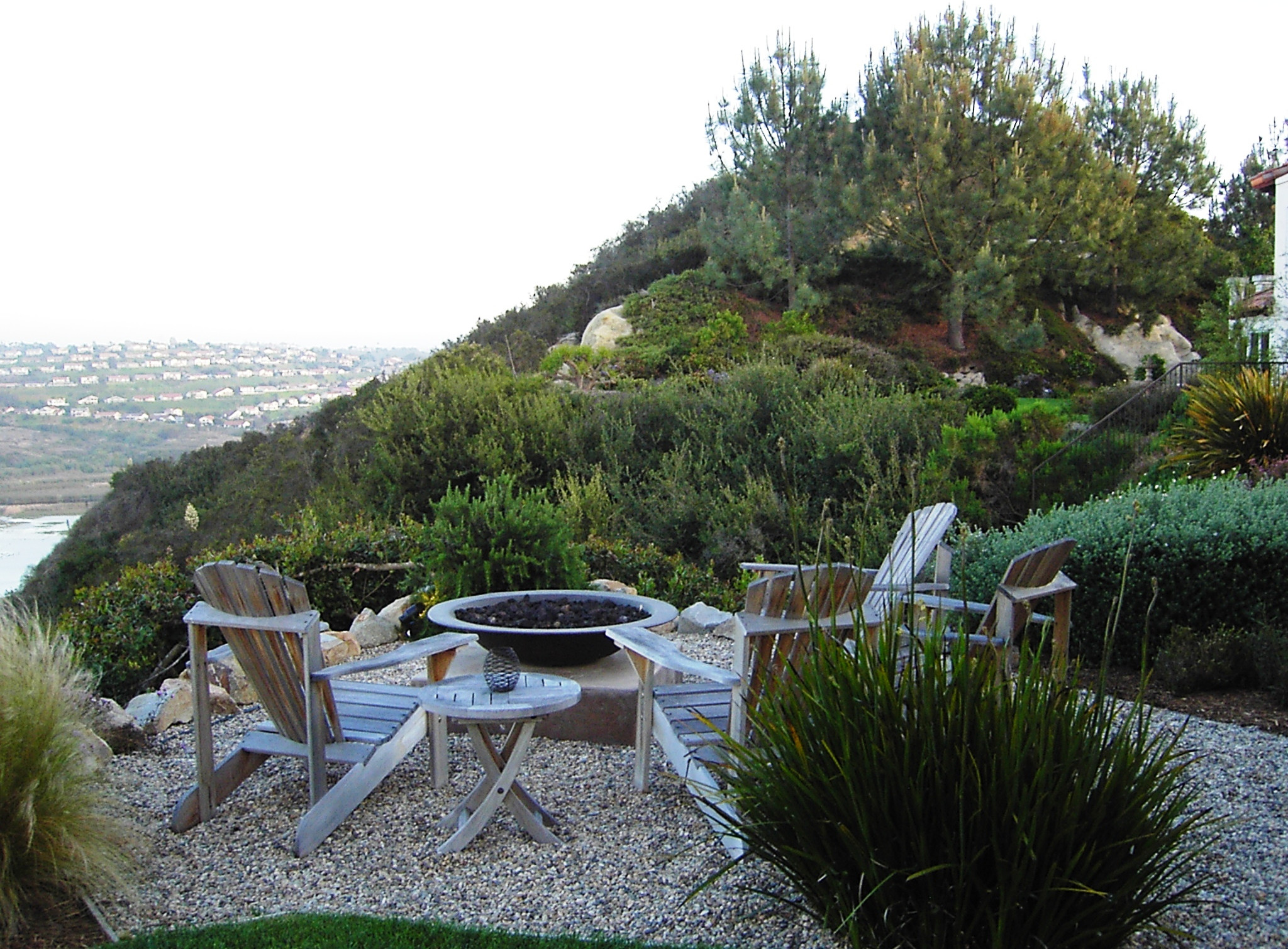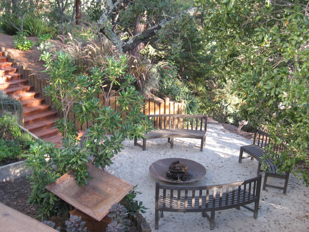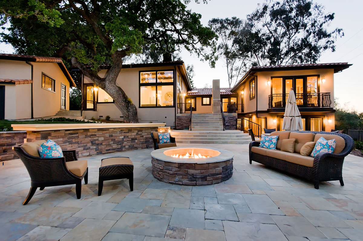 The decomposed granite and stone border that separates this fire pit from the greenery beyond is a smart safety precaution, particularly in drier climates.