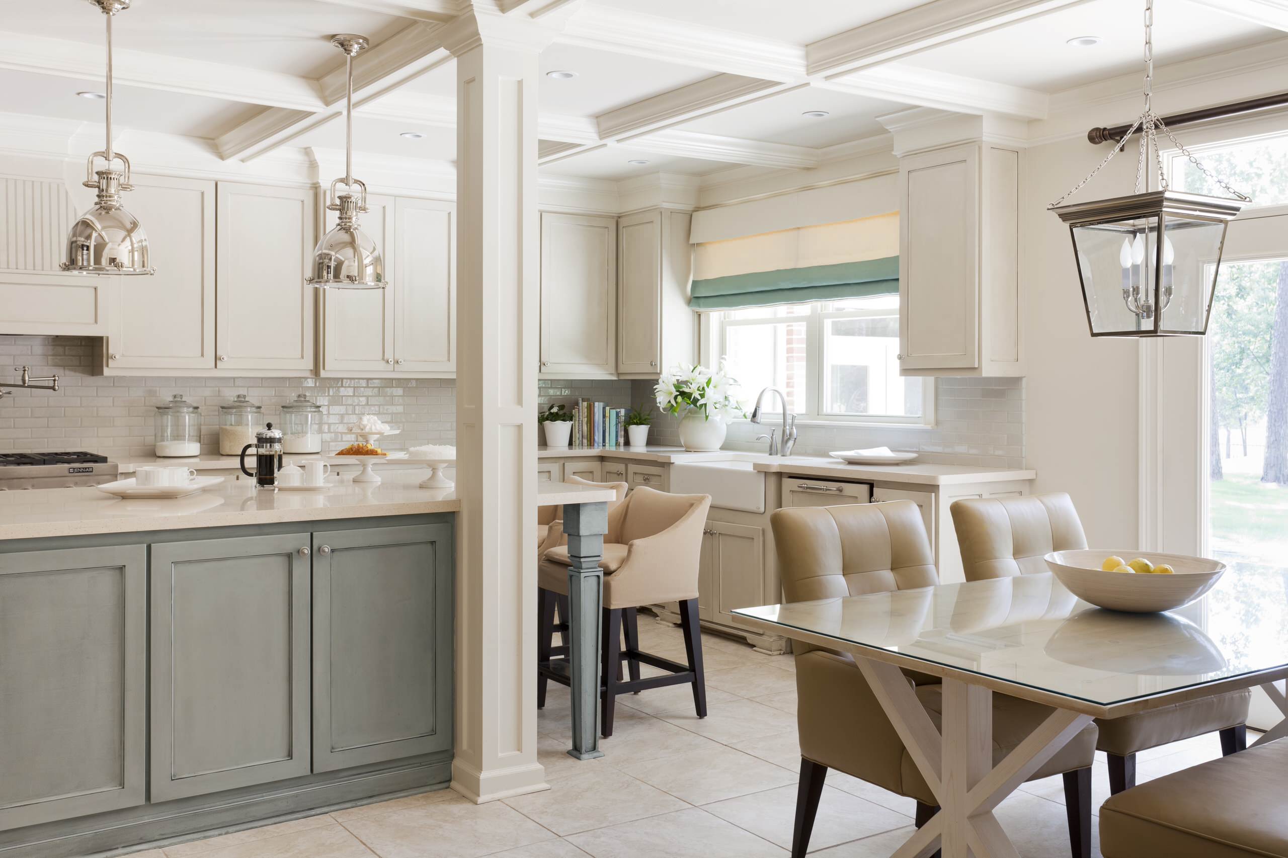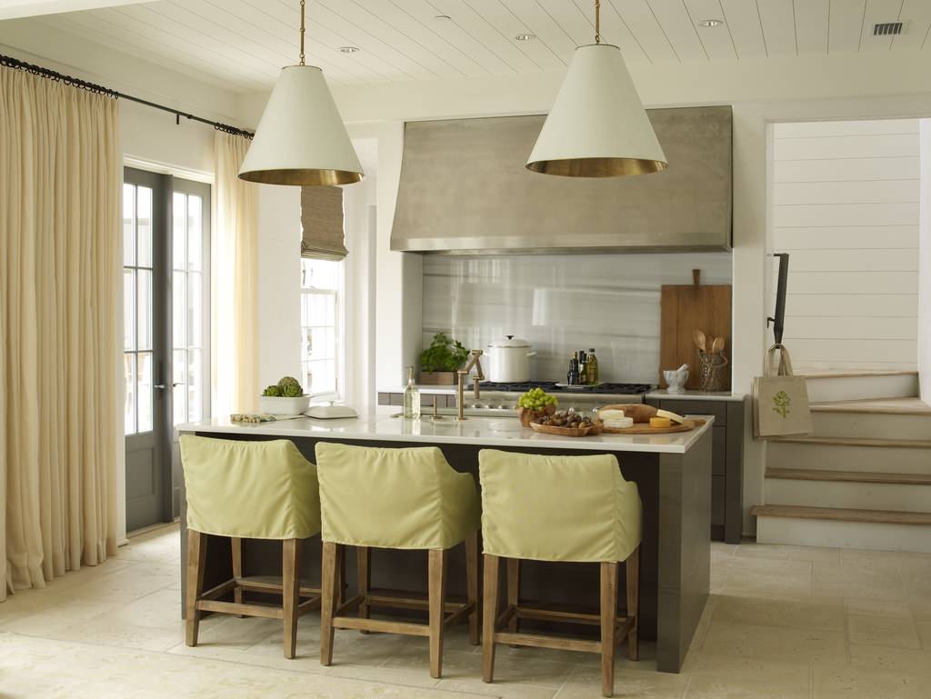 9. Heat lamp-style lights. No, the pendant lights over the island aren’t really heat lamps. But you may have noticed that this popular style appears to have stolen its form and shiny finishes from them.