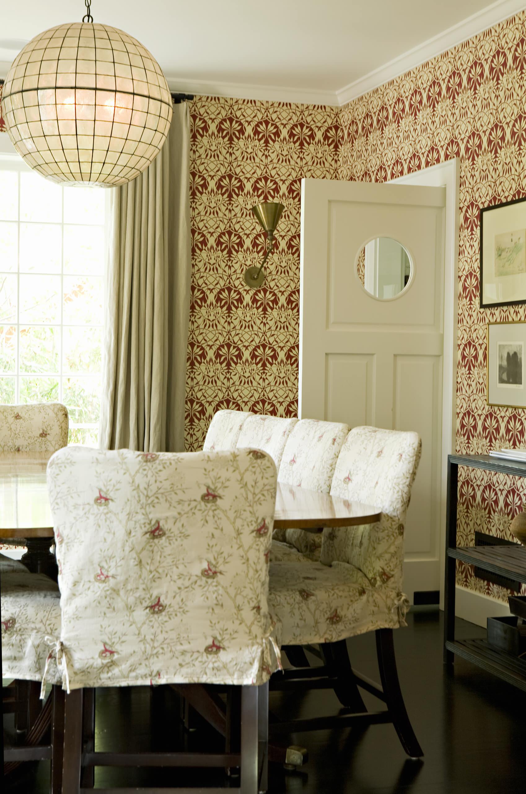 Here’s a lovely example of how a door with a porthole window can add style to the dining room.