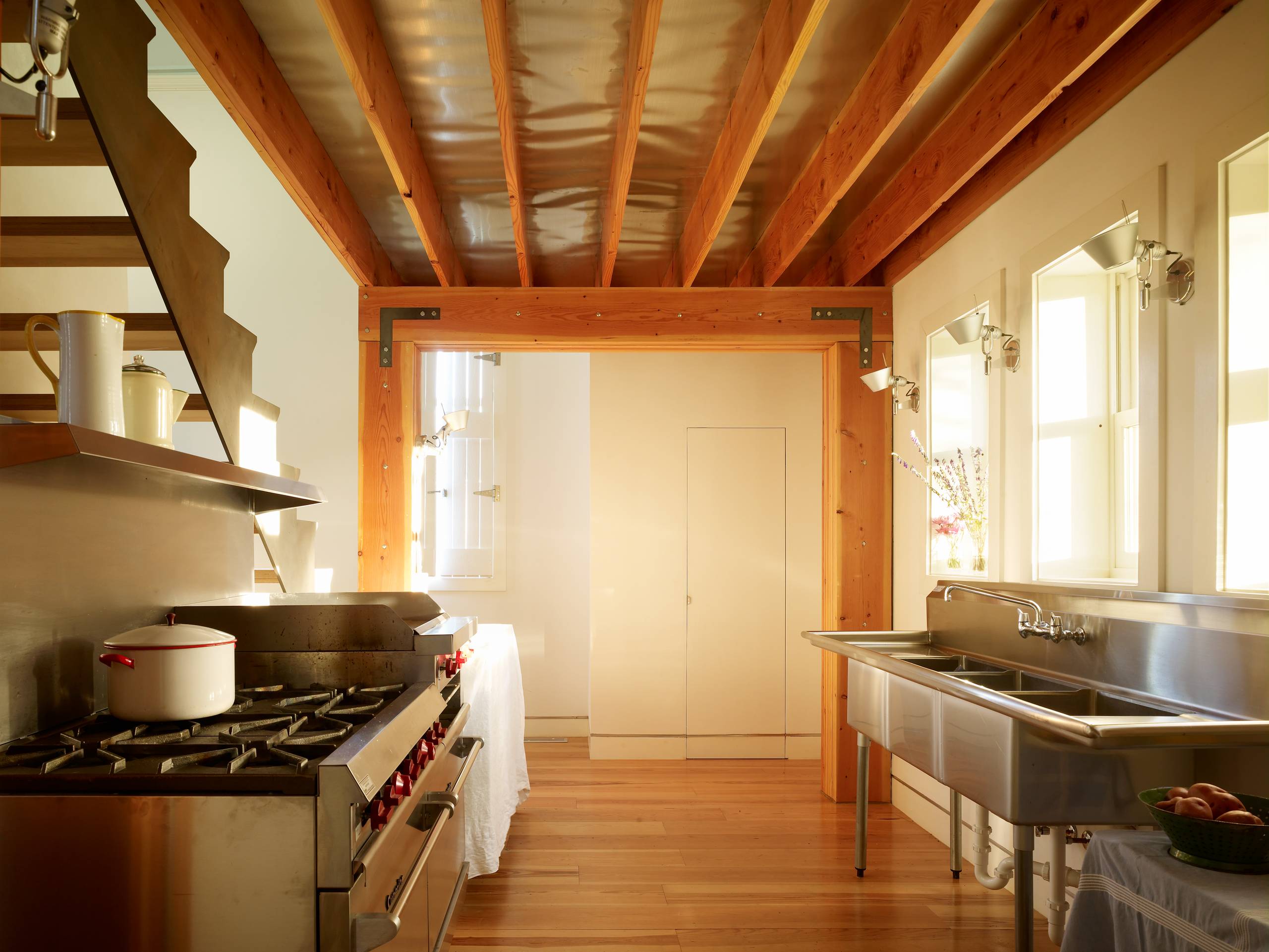 That could be one reason why professional kitchen elements have established themselves firmly into home design. Professional kitchens are the ultimate in practicality. They are designed to take tons of use and abuse, and are full of effective and beautiful components you can bring home.