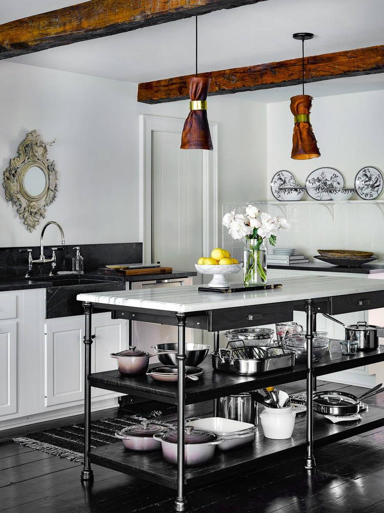 8. Marble-topped island. You can practically smell the chocolate croissants and espresso when you look at a French bakery-inspired marble-topped worktable like this one. They are so handy for rolling out pie crusts and other baking tasks.