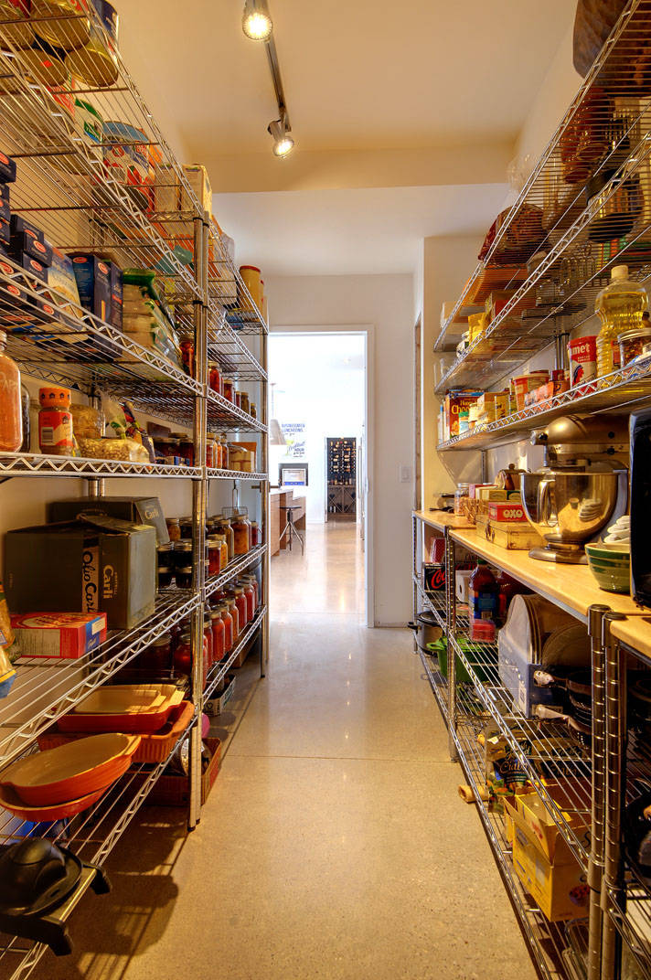 10. Commercial kitchen shelving. These units, which you can find at restaurant supply stores, are sturdy and sized right for items like large cereal boxes, cookware and small appliances.