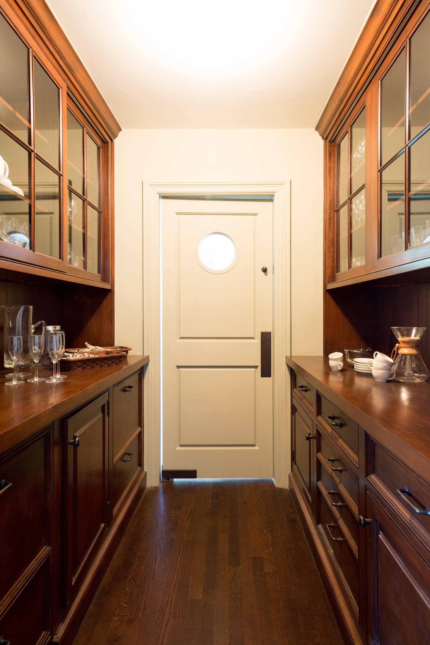 6. Service door. A service door with a porthole window brings an iconic restaurant element home. (Though it’s unlikely you’ll need one to prevent servers with full trays from crashes involving open doors.) A good spot for it is between a kitchen and a butler’s pantry, as seen here, or between either of those rooms and the dining room.