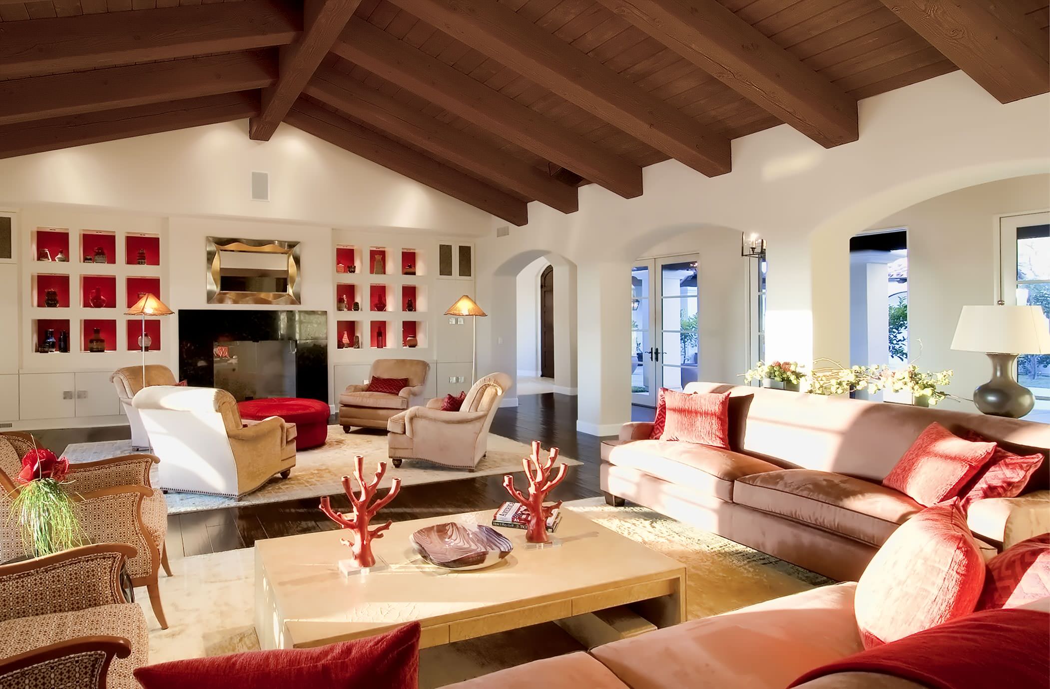 Reenforce the coastal look by using a single accent color throughout the room. This deep coral looks stunning with the soft beach colors in the rest of the space.