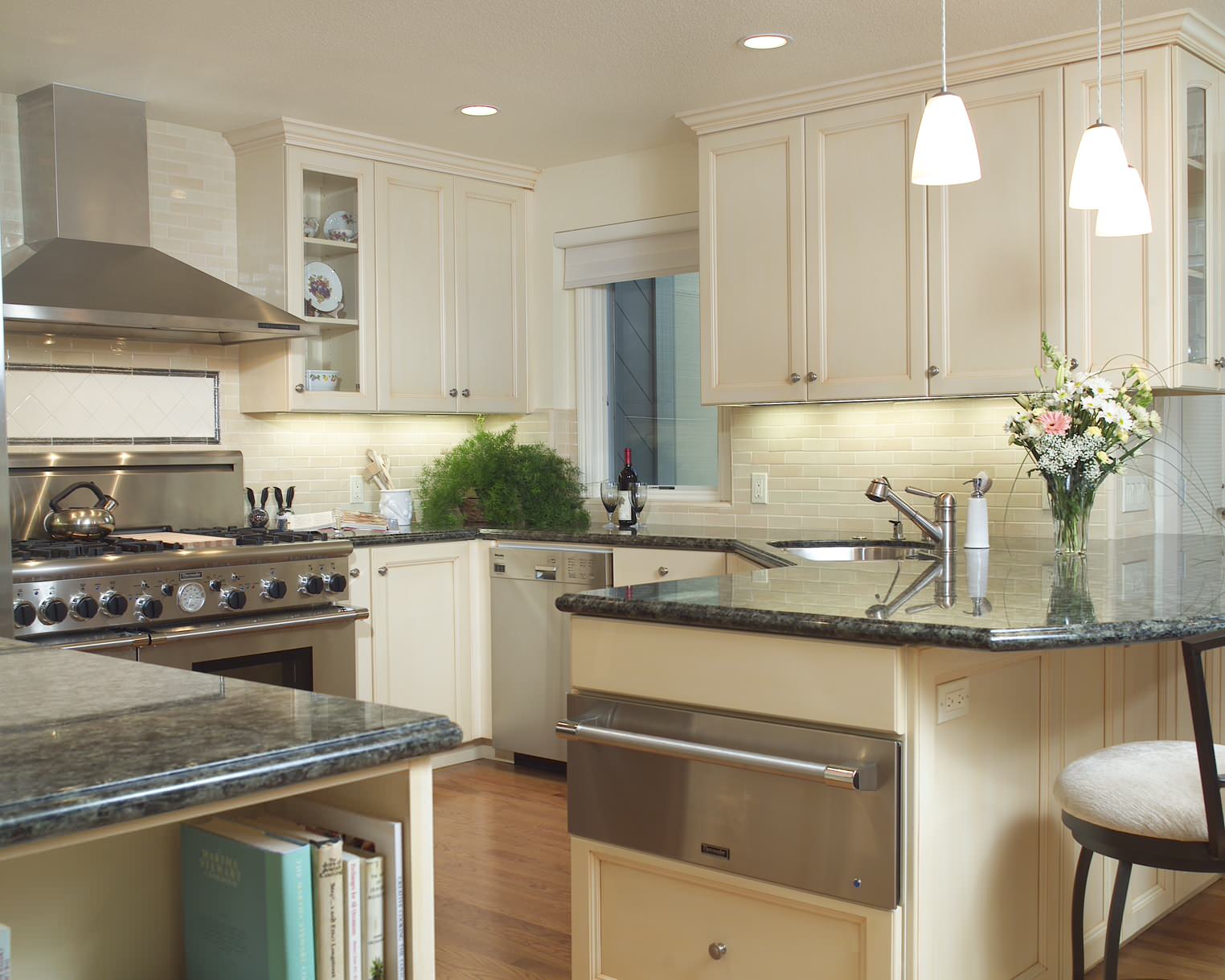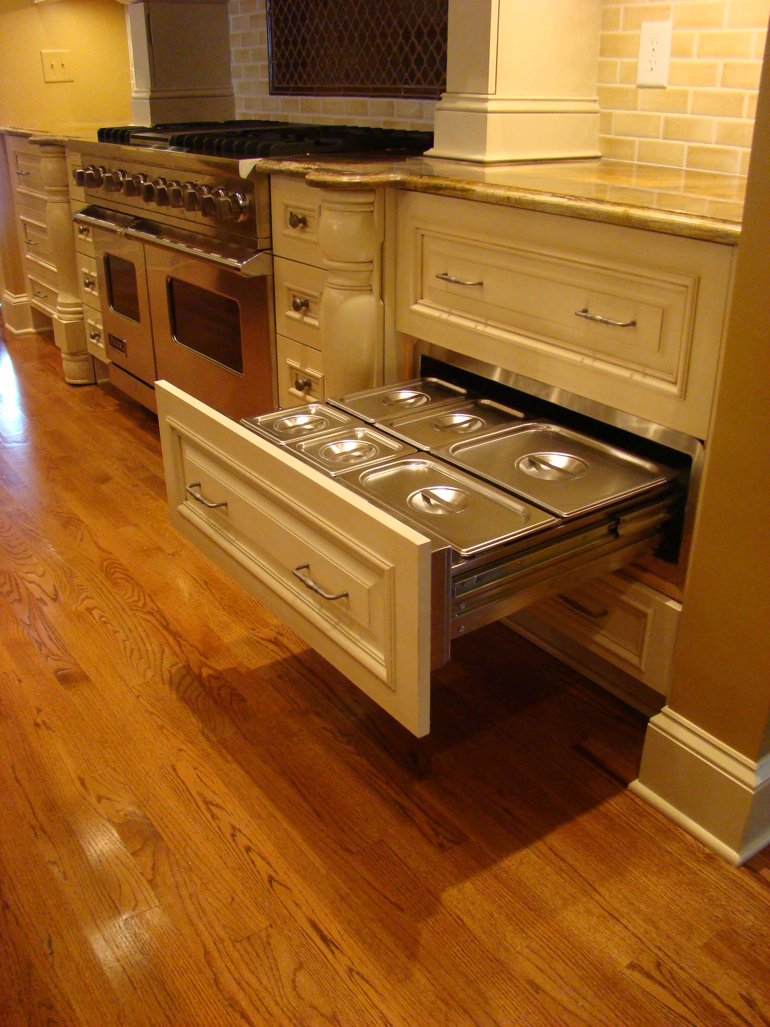 Rather than eat up wall cabinet space, this warming drawer tucks easily into typically unused space on the kitchen peninsula.