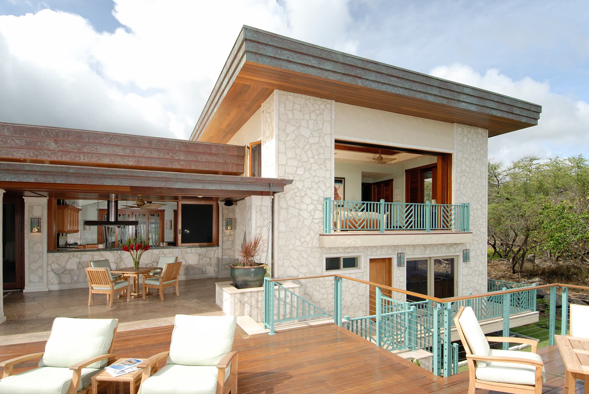 Have a little fun by choosing a completely unexpected hue. If your home is done in neutrals, almost any color will work as an accent. A blue-green fence on this patio enhances the home’s contemporary appeal.