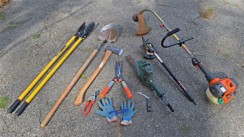 These are tools that can be used for working with ornamental grasses. Central to these are gloves and safety glasses.