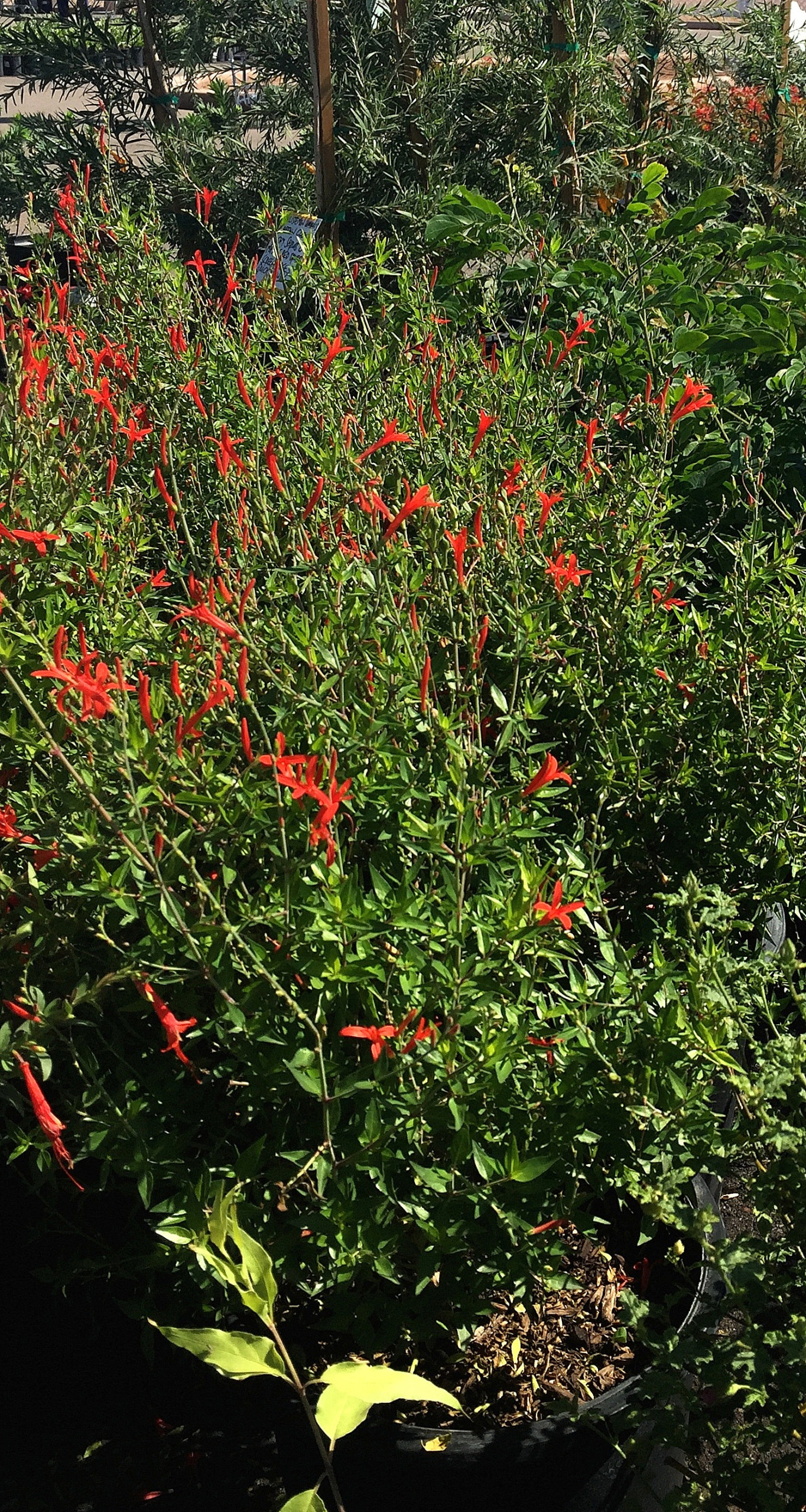 Anisacanthus thurberi is a close relative and can be used in much the same way. It’s taller, at 5 to 8 feet, and produces red and sometimes yellow or orange flowers earlier in the season.