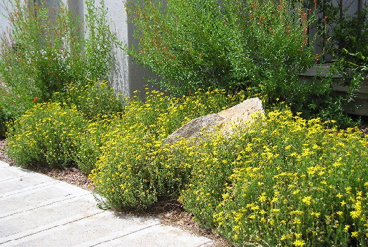 Plant flame acanthus in the background of perennial beds, where its orange blossoms have greatest effect. Plant lower-growing plants such as angelita daisy (Tetraneuris acaulis), blackfoot daisy (Melampodium leucanthum), damianaita (Chrysactinia mexicana) and purple trailing lantana (Lantana montevidensis) in front.