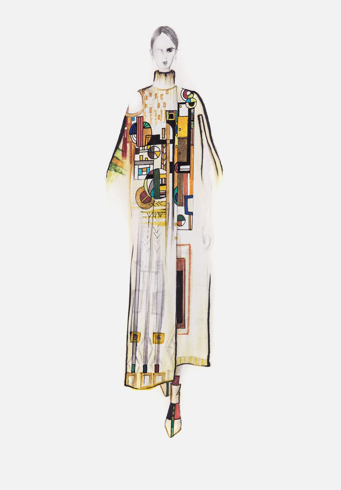 While Chang’s translation of this home into her fashion design is overarching and can’t be tied to particular feature of the home, the next student winner was specifically inspired by a singular architectural detail.