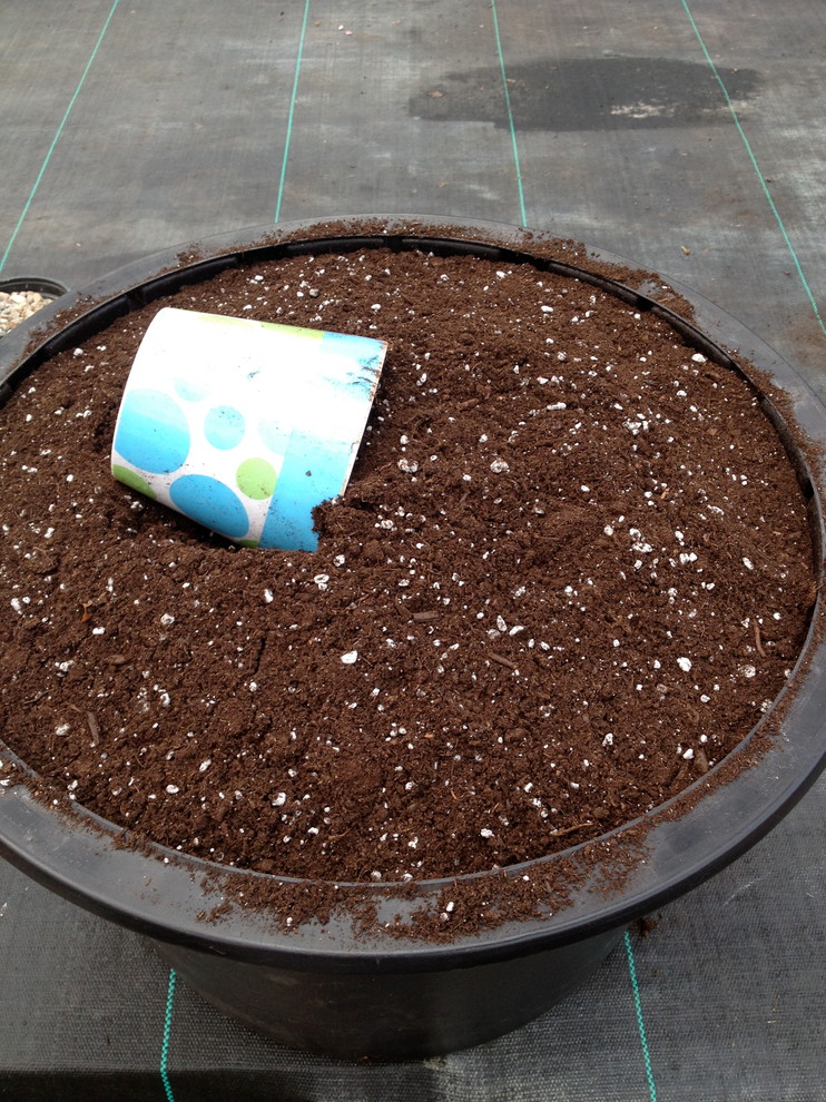 Fill your container with a light planting mix to about an inch from the top.