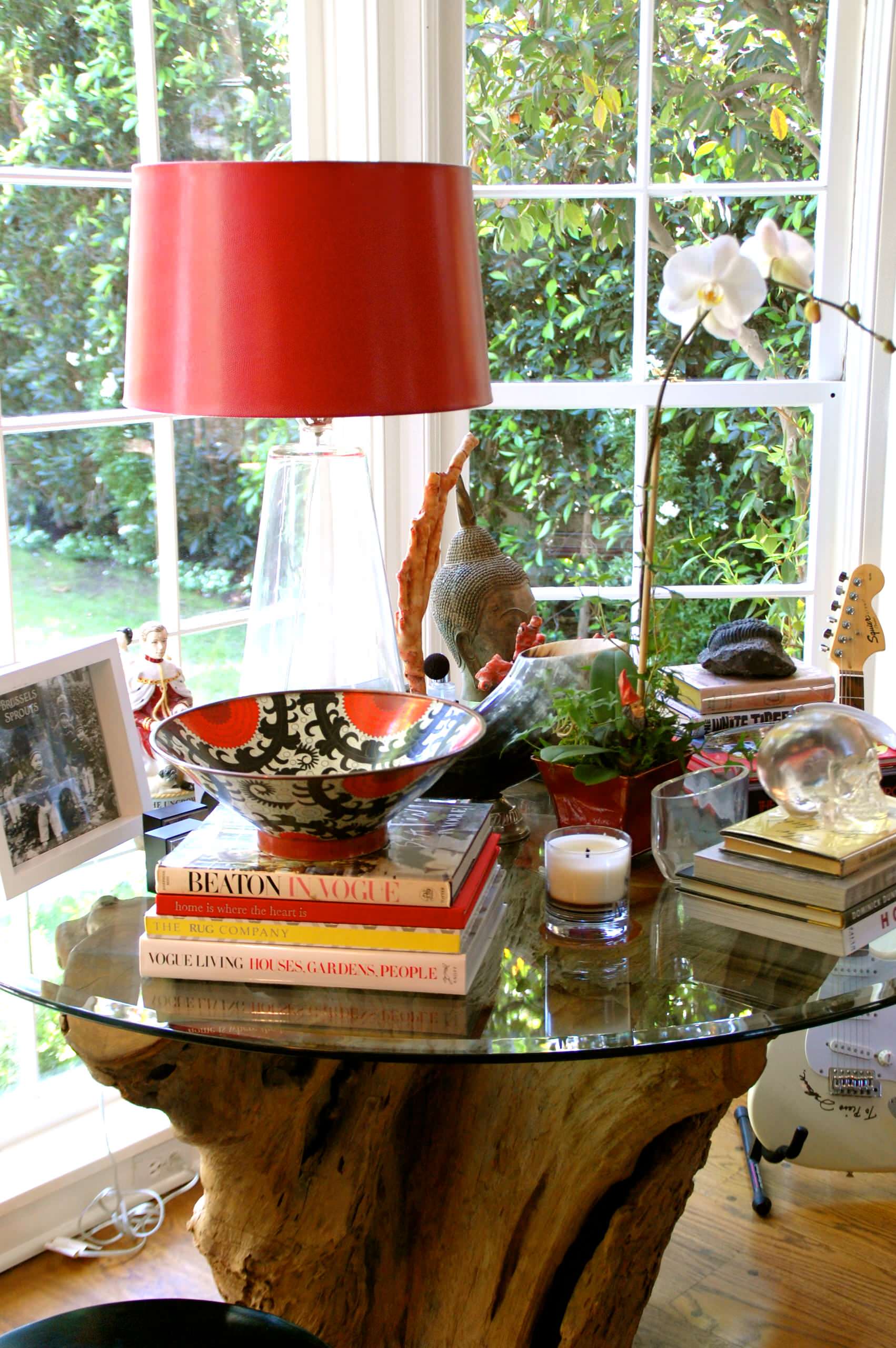 Create a tablescape with mementos. Channel the spirit of the style by creating a collected global tablescape. The more diverse the objects, the better this can work.