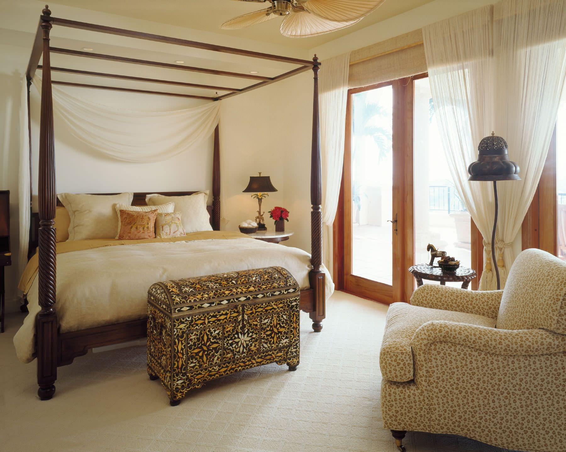 Bring in airy draperies and canopies. Light, flowing window treatments and mosquito netting for beds were picked up in the islands.