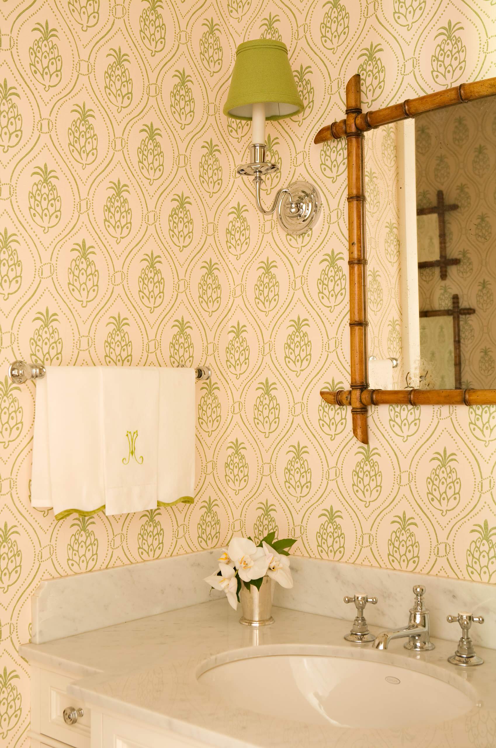 Bring in the pineapples. Pinepples were another common island motif that local craftspeople added to furniture. The bamboo mirror finishes off the look.