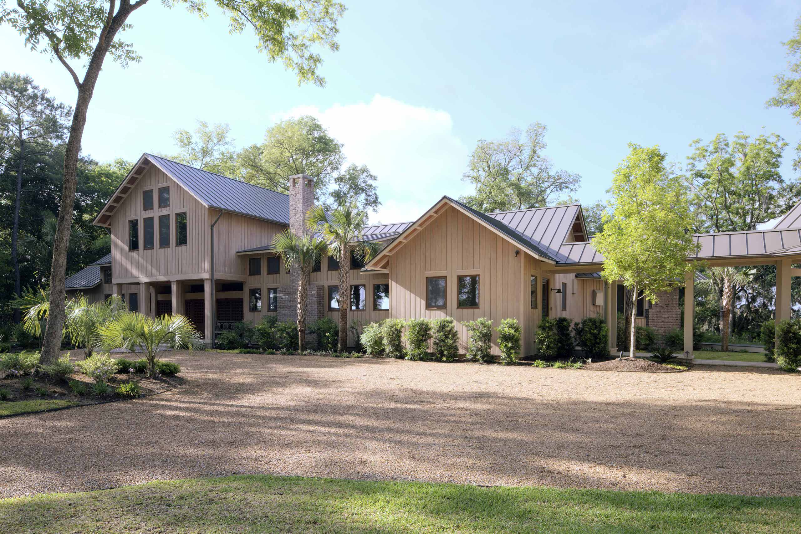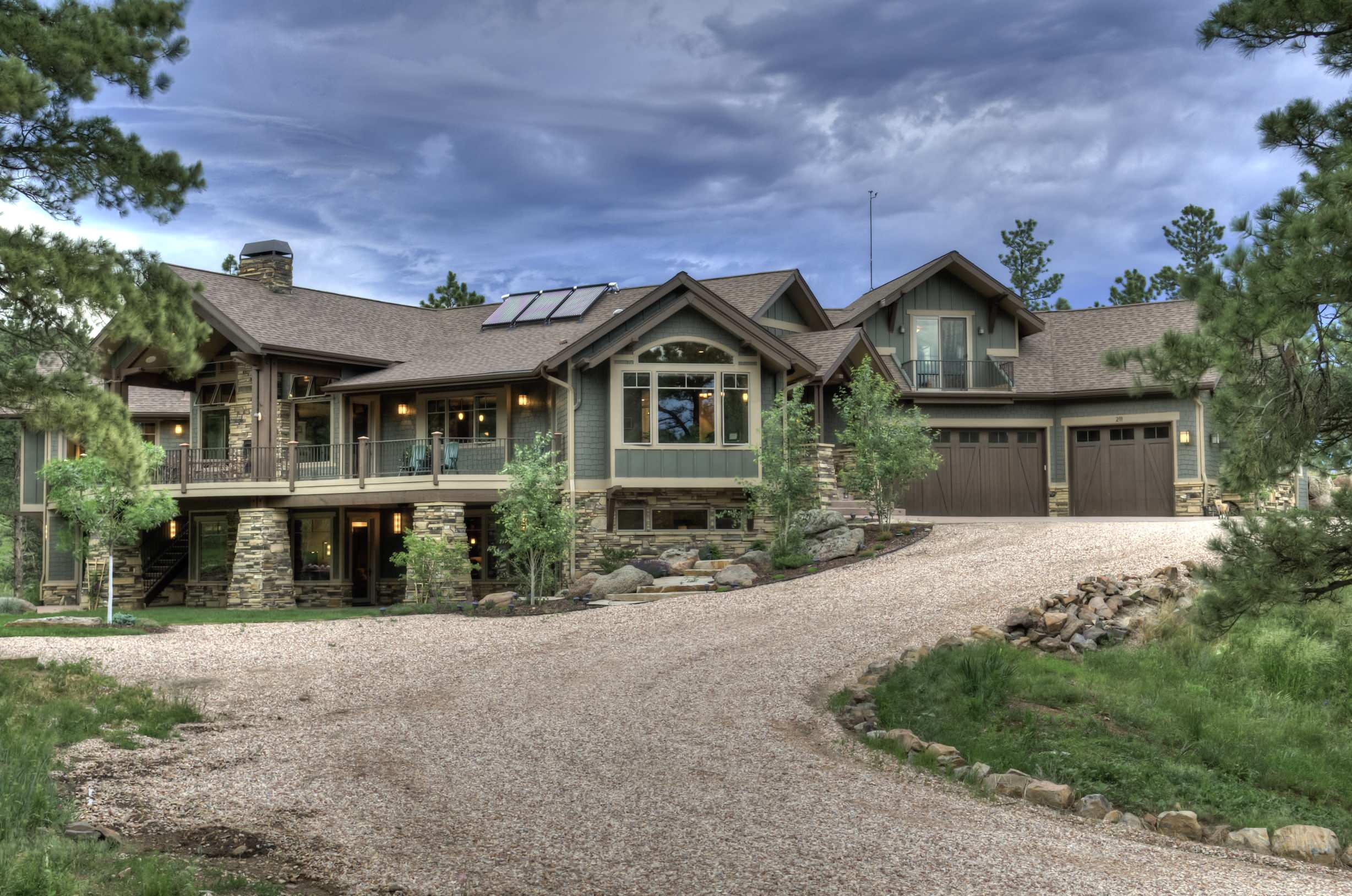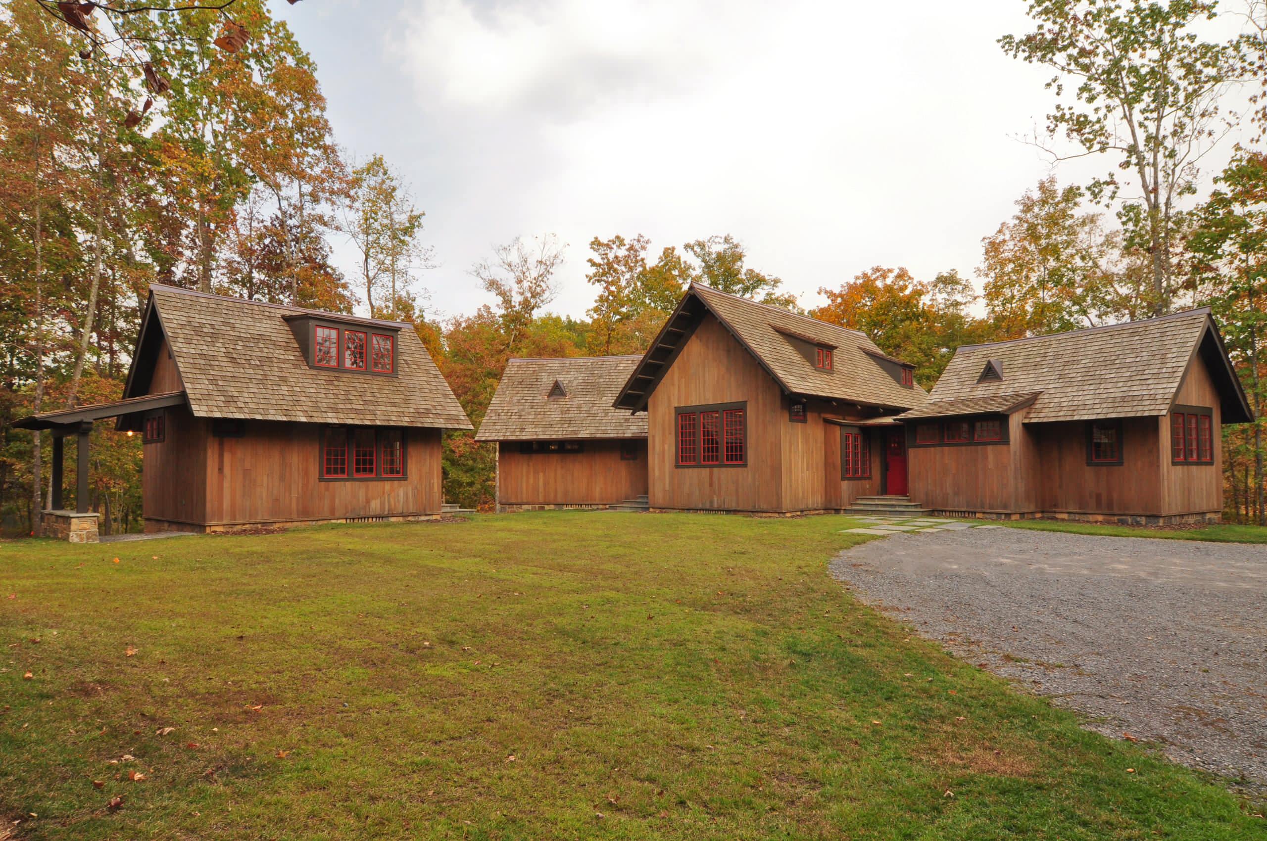 The long gravel path leading up to this beautiful house enhances the rustic charm of the exterior. Like a good rug, it ties everything together, and the landscape transitions seamlessly to the house.