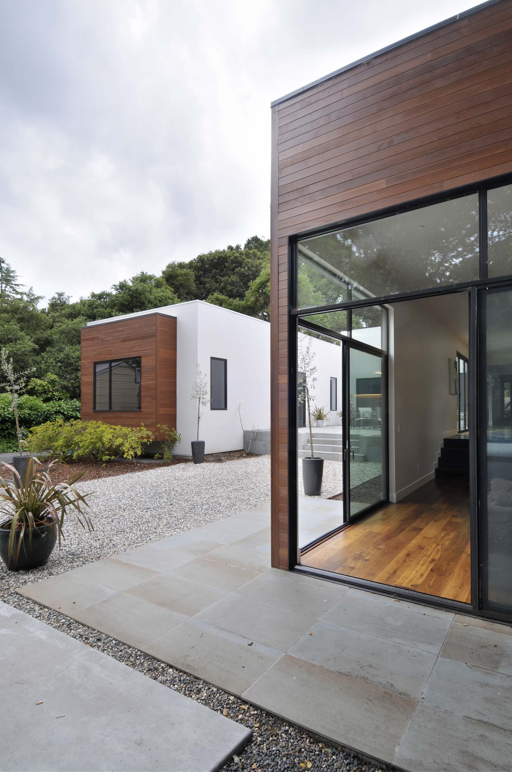 The laid-back gravel drive makes this modern exterior casually inviting. Concrete might have left it feeling stiff and rigid, and pavers would have been too busy.