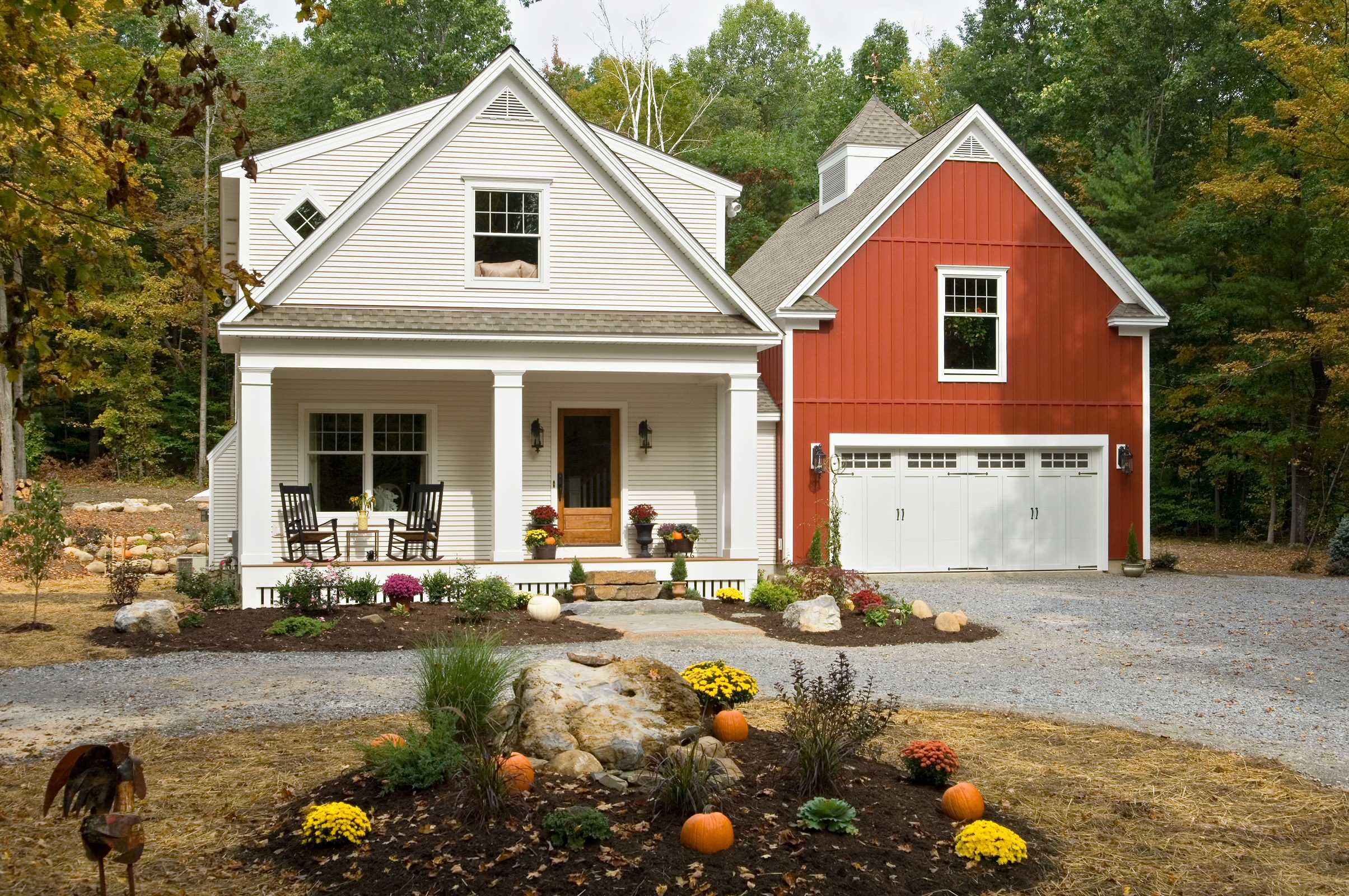 These crimson garage doors are quite striking against a backdrop of soft-tone gravel. They wouldn't be nearly as radiant if the driveway had been laid in black asphalt.