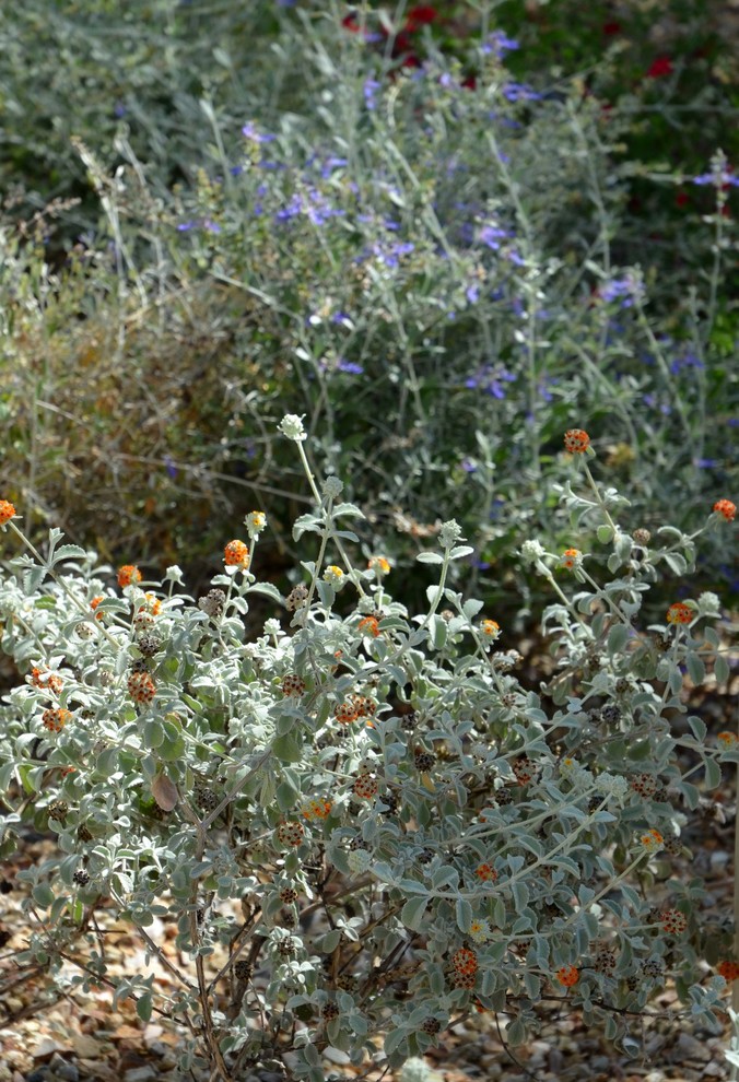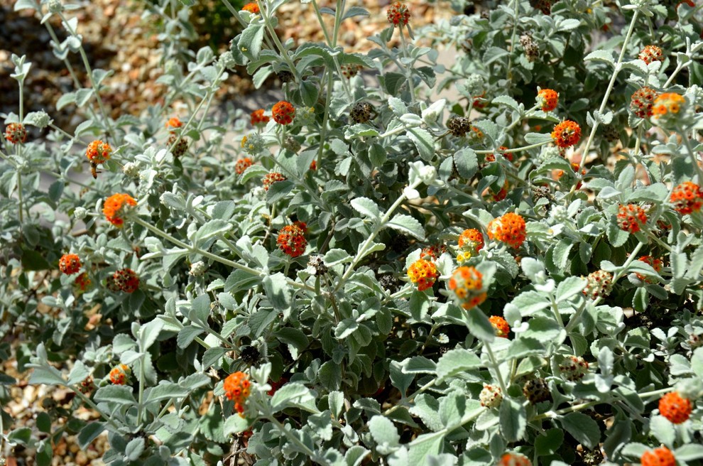 Woolly butterfly bush (Buddleja marrubiifolia) is a drought-tolerant plant that deserves more attention in the garden. What’s not to love about a medium-size shrub that has velvety gray-green leaves and a long bloom period, and can easily handle the intense desert heat and cold winter temperatures? As its common name suggests, butterflies find its flowers irresistible, and you’ll find yourself touching its velvet-textured leaves. From locations with full sun to those that receive hot, reflected heat, this Chihuahuan Desert native can take it all. Its compact growth habit means that it seldom needs pruning, making it a must-have for the drought-tolerant garden. Don’t confuse woolly butterfly bush with the exotic, sometimes invasive Buddleja davidii.