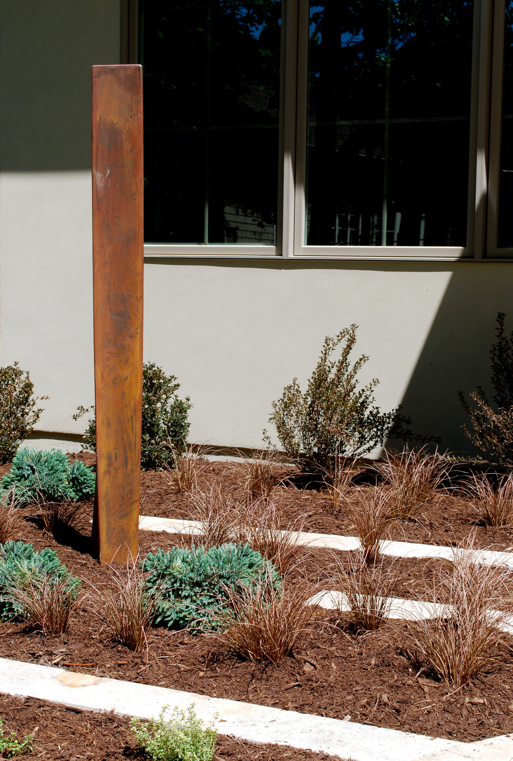 Blue and orange are complementary hues on the color wheel, so ‘Blue Star’ juniper plays well in contemporary gardens where rusted steel is used. In the photo shown here, it adds needed but restrained color to an almost monochromatic scheme.