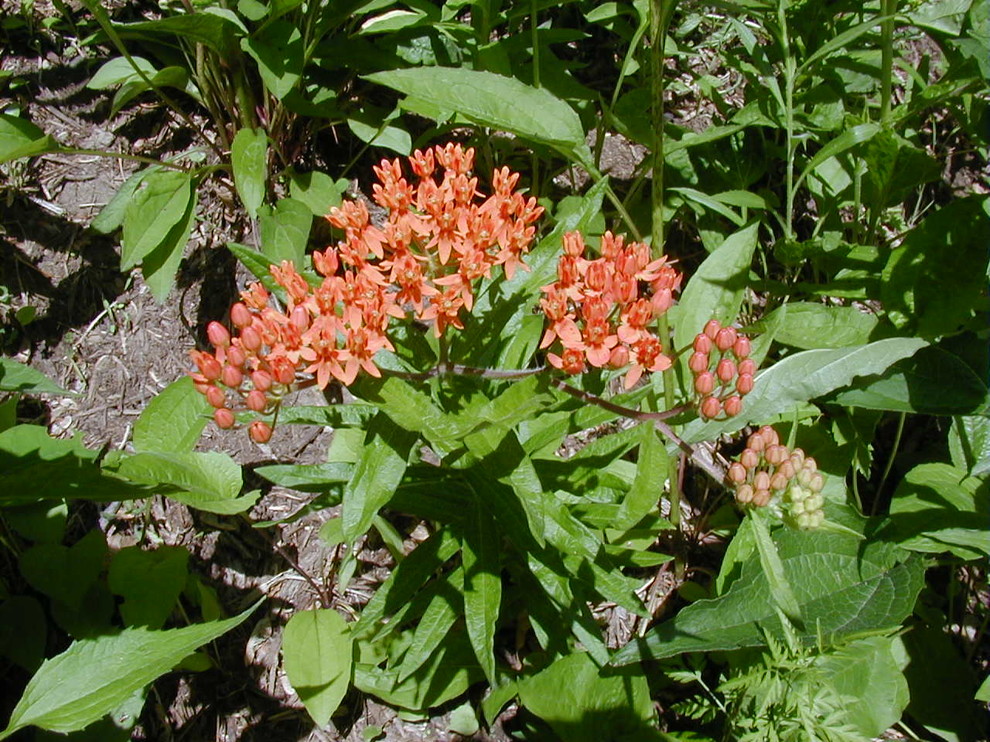 Butterfly weed (Asclepias tuberosa, zones 4 to 7). Here is another milkweed species, shorter than the others (2 feet by 2 feet). For me and area experts, it’s not a favorable plant for monarchs or other nectaring insects — it does tolerate dry and other problem soils, however.