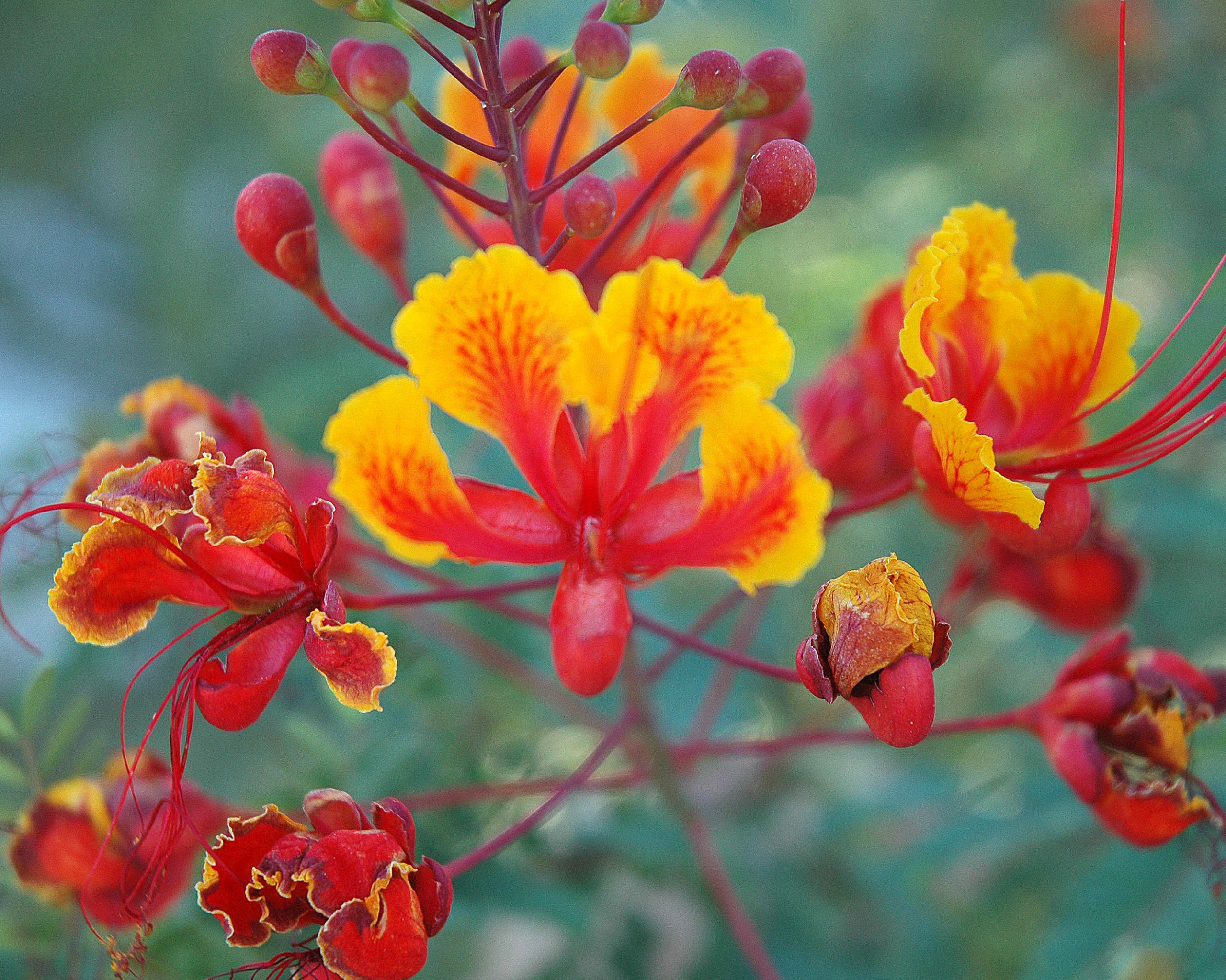 Common names: Red bird-of-paradise, dwarf poinciana, peacock flower, pride-of-Barbados