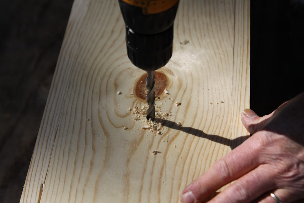 6. Drill drain holes. Using a ⅜-inch drill bit, drill at least three holes in the bottom of the box for excess water to drain out.